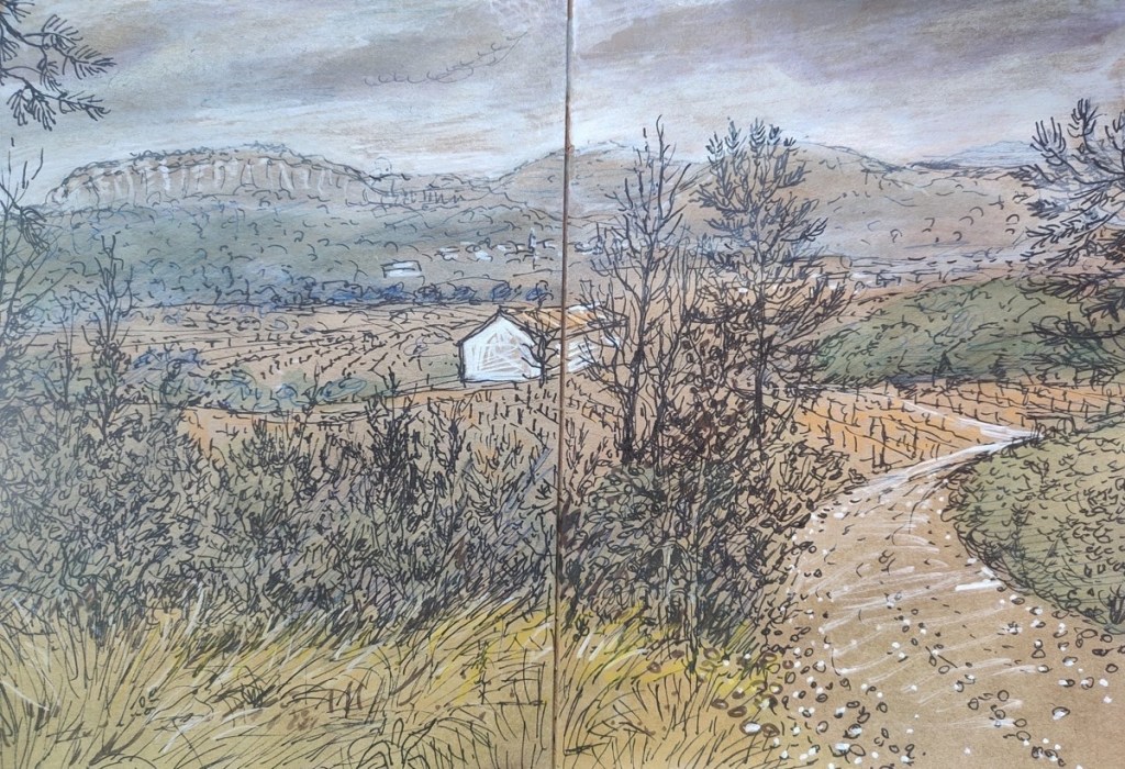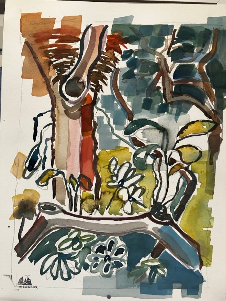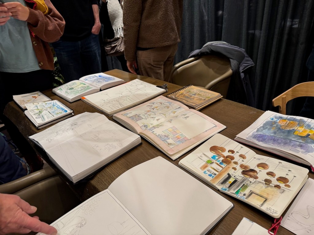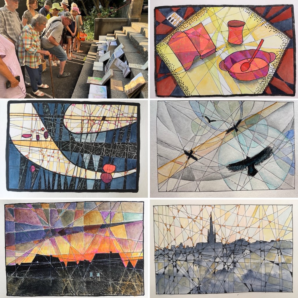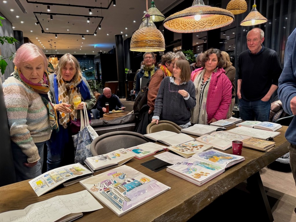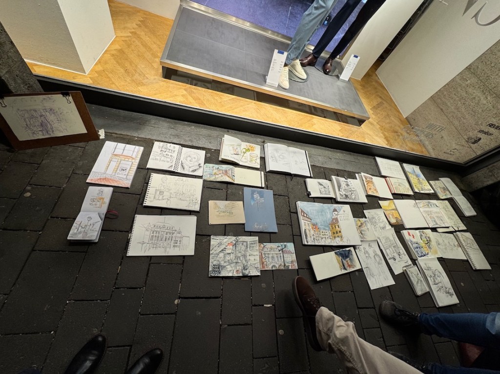 Wir haben uns, wie gewohnt, ab Mitte-Januar jeden Mittwoch getroffen; das Jahr begann traditionsmäßig im Museum König. (Am 14.01.2026 beginnt dort auch das Zeichen-Jahr für uns, aber dazu wird es noch eine gesonderte E-Mail geben.) Wir organisierten in 2025, gemeinsam mit den KölnerInnen und KoblenzerInnen, das dritte regionale Jahrestreffen der Urban Sketcher (Nächstes Jahr wieder!). Viele von uns sind gemeinsam zum Jahrestreffen der Deutschen Urban Sketcher nach Stuttgart gefahren (nächstes Jahr geht es nach Bremen). Und wir haben nun einen eigenen Stempel, den wir bei unseren Treffen dabei haben.