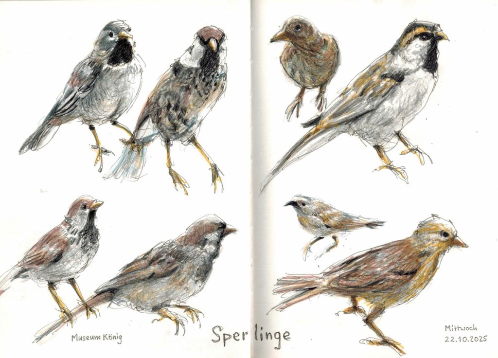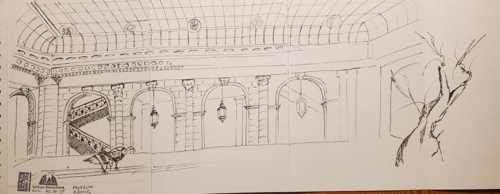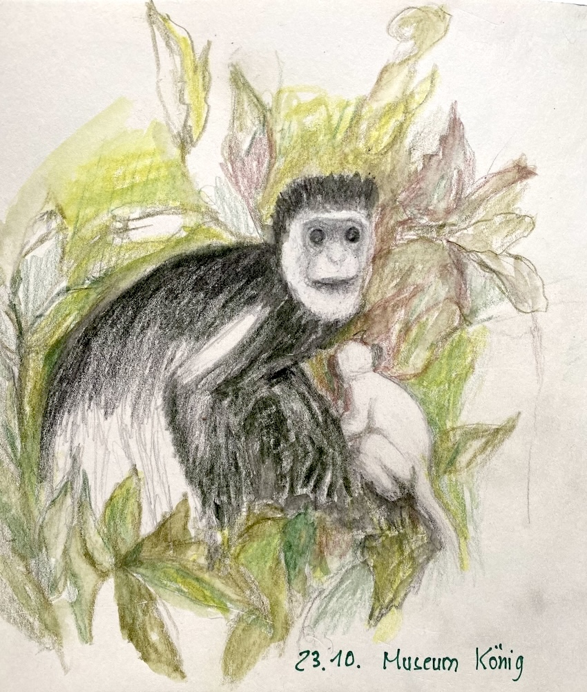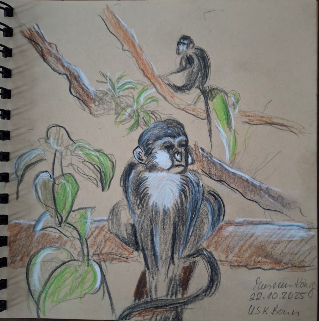 Wir treffen uns am Mittwoch, dem 22.10.2025, ab 18 Uhr – wer will, auch früher – im Museum König zum zeichnen, jeder dort, wo er mag. Alle Abteilungen sind sehenswert. Fische (lebendige) gibt’s im Keller. Die Vernissage machen wir um 19:30 Uhr im Erdgeschoss in der Savanne. Das Museum hat bis 21 Uhr geöffnet – also noch viel Zeit auch danach.