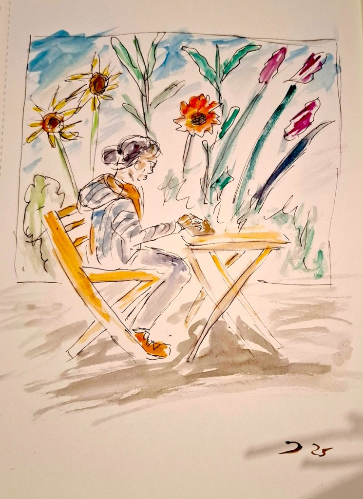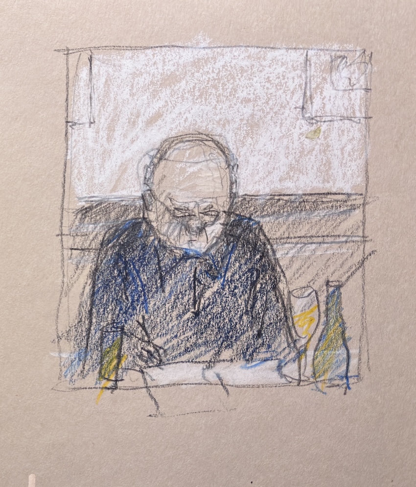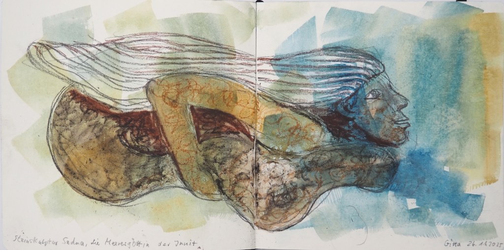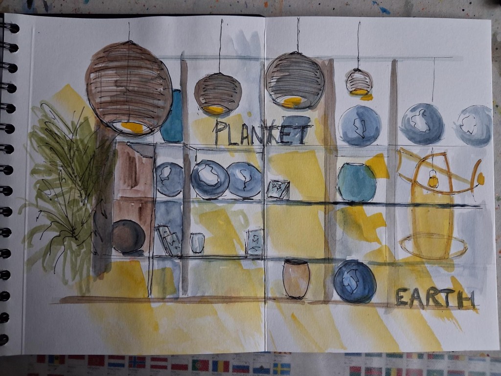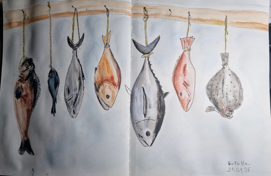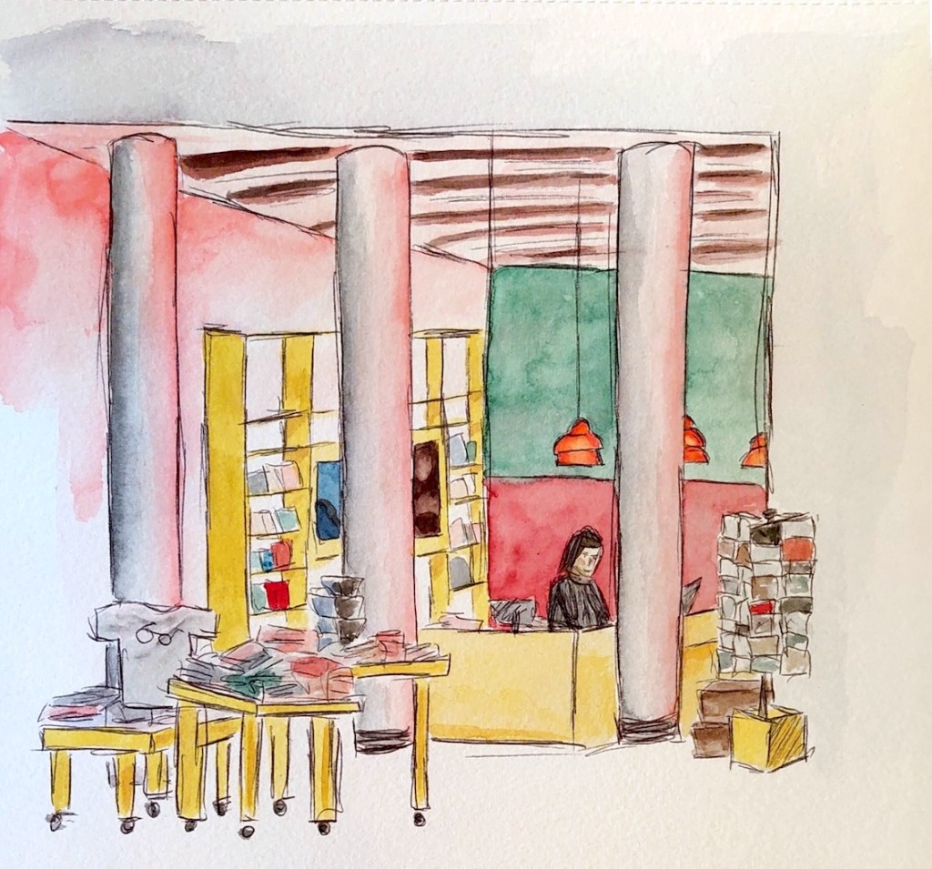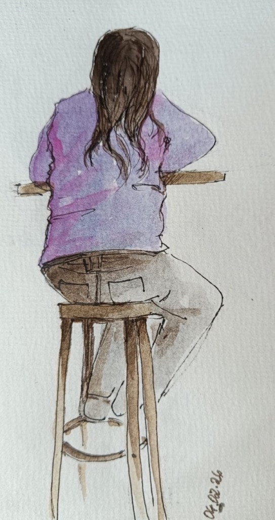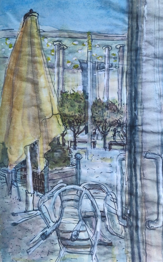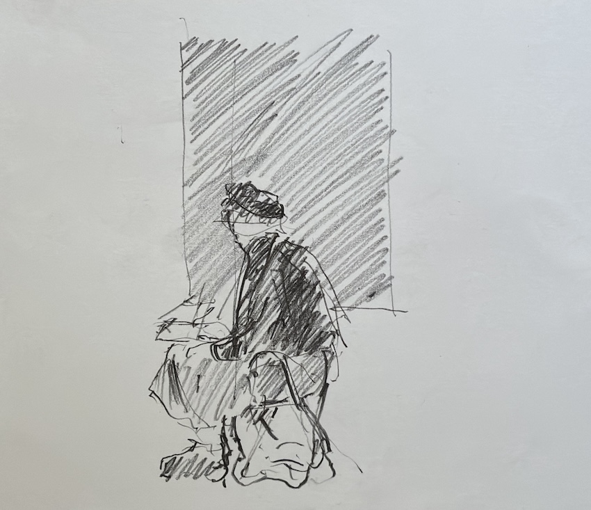 Wir treffen uns am nächsten Mittwoch, dem 19.11.2025, ab 18 Uhr oder früher (die Vernissage machen wir auch etwas früher, siehe unten) im Kaufhof-Galeria-Restaurant. Das Restaurant befindet sich in der 4. Etage, man kommt gut mit der Rolltreppe hin. Es gibt dort viele Sitzmöglichkeiten und sogar einen Blick in den Verkaufsraum. Wem das zu bieder ist, kann sich irgendwo im Kaufhof eine ruhigere Ecke suchen und das Skizzenbuch zücken.