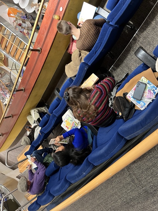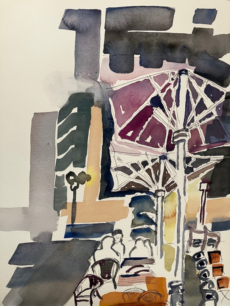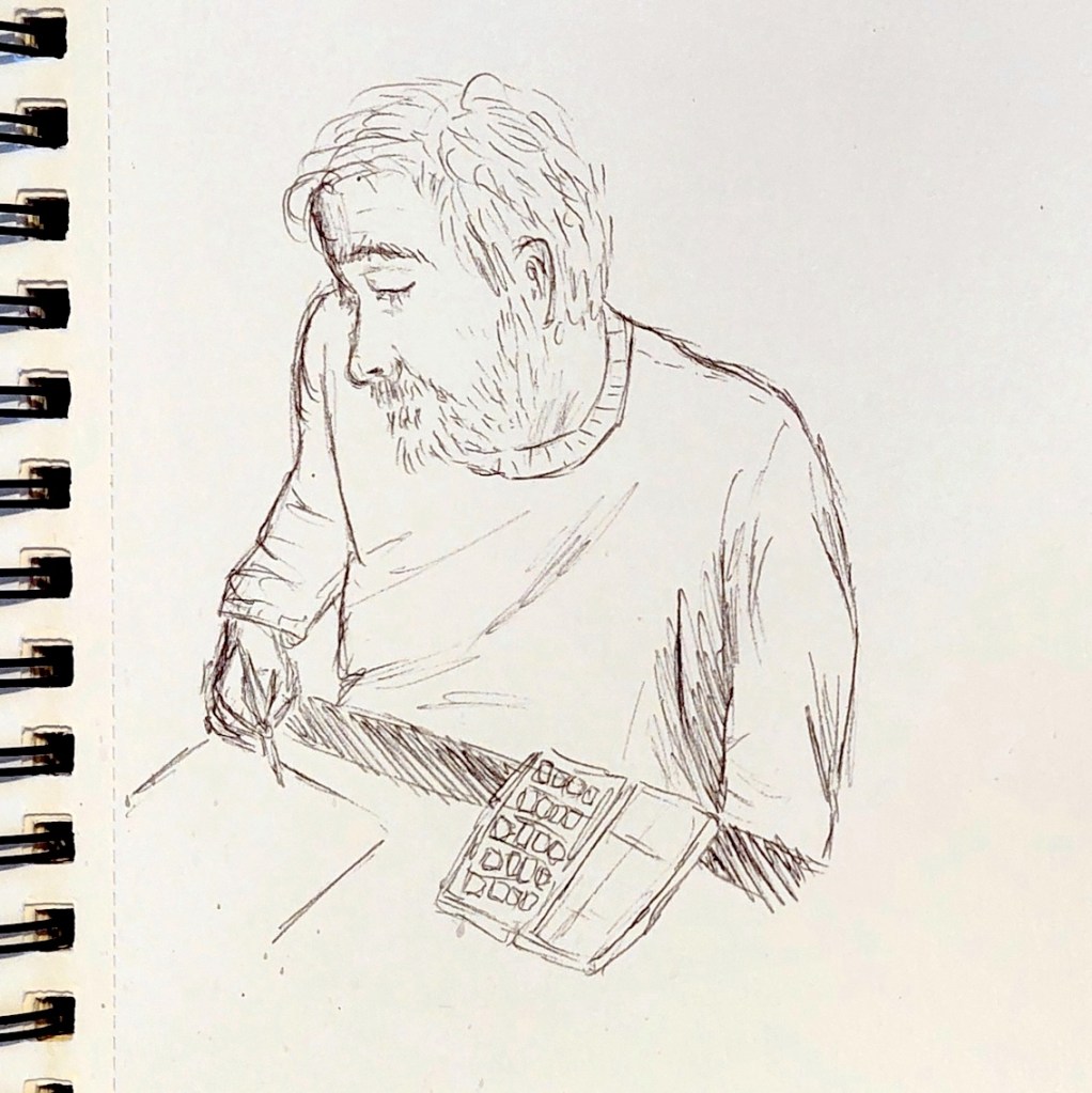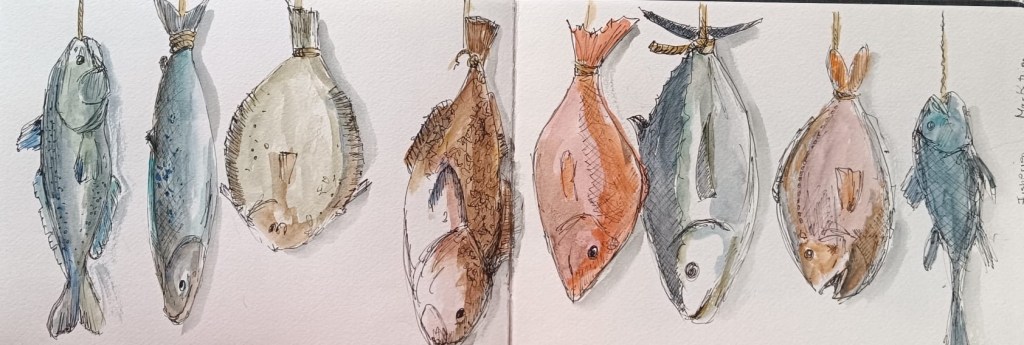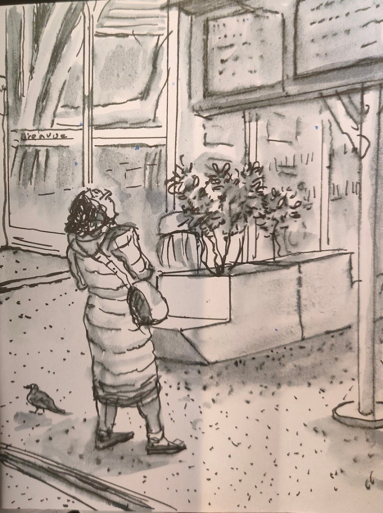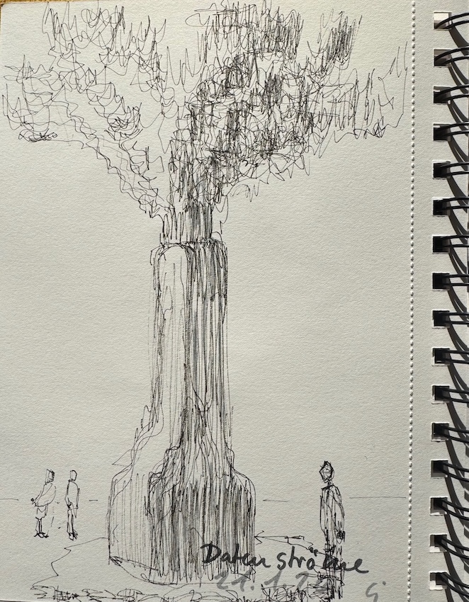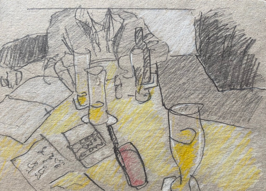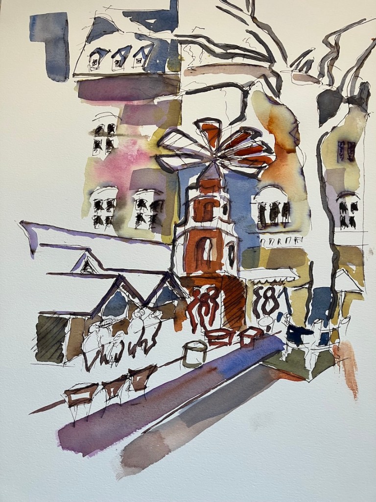 Wir treffen uns am nächsten Mittwoch, dem 19.11.2025, ab 18 Uhr oder früher (die Vernissage machen wir auch etwas früher, siehe unten) im Kaufhof-Galeria-Restaurant. Das Restaurant befindet sich in der 4. Etage, man kommt gut mit der Rolltreppe hin. Es gibt dort viele Sitzmöglichkeiten und sogar einen Blick in den Verkaufsraum. Wem das zu bieder ist, kann sich irgendwo im Kaufhof eine ruhigere Ecke suchen und das Skizzenbuch zücken.