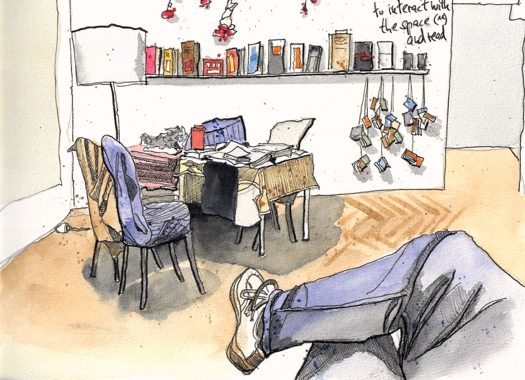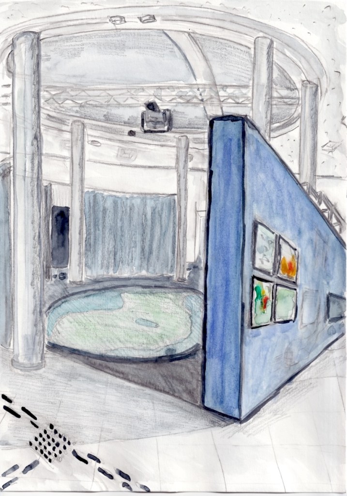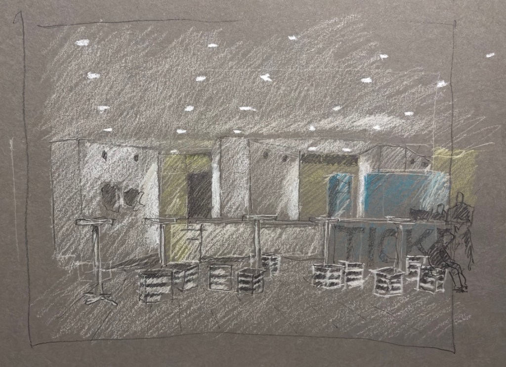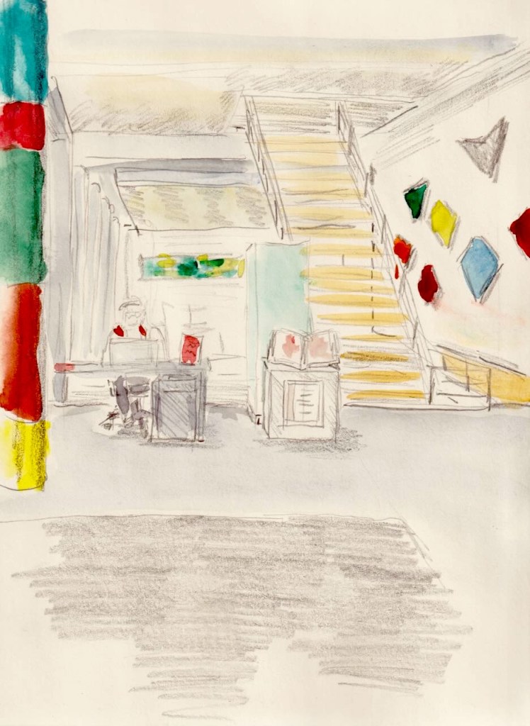Hier unsere Skizzen von einem Abend BuKuHa! Beginnen wir mit dem Foyer: