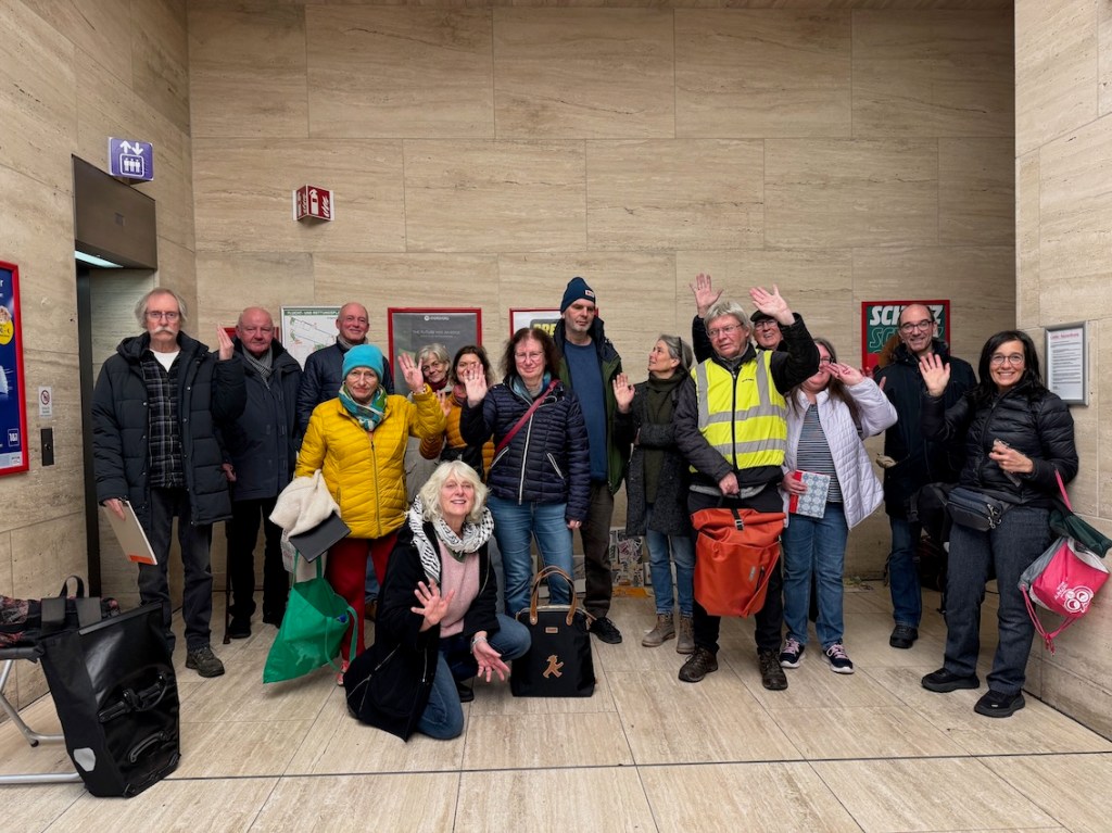 Für die Vernissage treffen wir uns um 19:30 Uhr vor der Buchhandlung Thalia bei den hell beleuchteten Schaufenstern, wo wir auch unser Gruppenfoto aufnehmen werden.