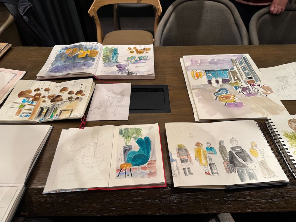 Irene – Zeichner im Motel OneAngelika – Holger und Cornelia beim ZeichnenIrene – Zeichner und Gäste im Motel One