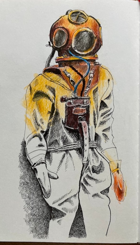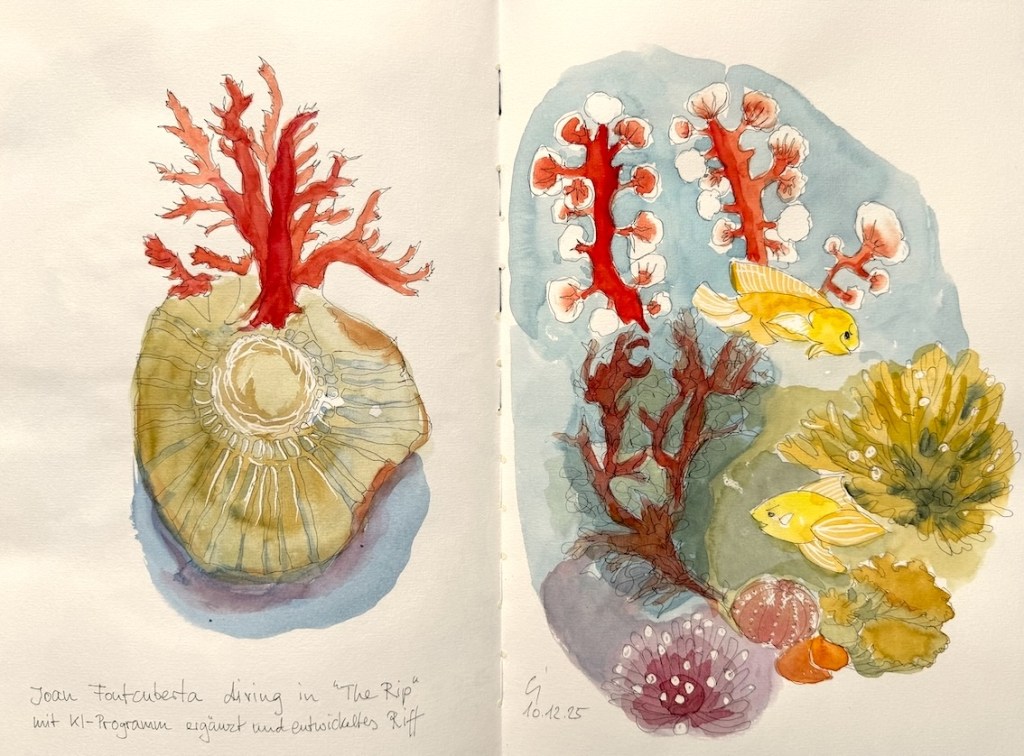 Alfred – Taucheranzug von 1797 in der Oder getestetMarco – TaucherausrüstungKirsten W – Taucheranzug von 1797 und Galionsfigur von irgendwannAngelika – Kapitän Nemo oder die Freiheit unter der MeeresoberflächeAngelika – Quallen und SeetangAlfred – SalmonGabi – Fische in „natürlichem“ UmfeldMartina B – da hängen die FischeGitta – Sedna, die Meeresgöttin der InuitGitta – Sedna, die Meeresgöttin der Inuit als SteinskulpturHelmut – Kuba KoralleHelmut – verschiedene KorallenformenHolger – Häkelkoralle, gezeichnetHolger – Häkelkoralle, gezeichnet und aquarelliert