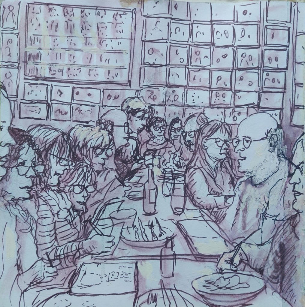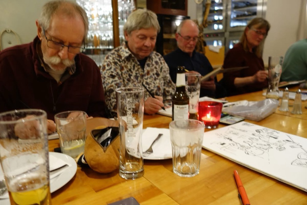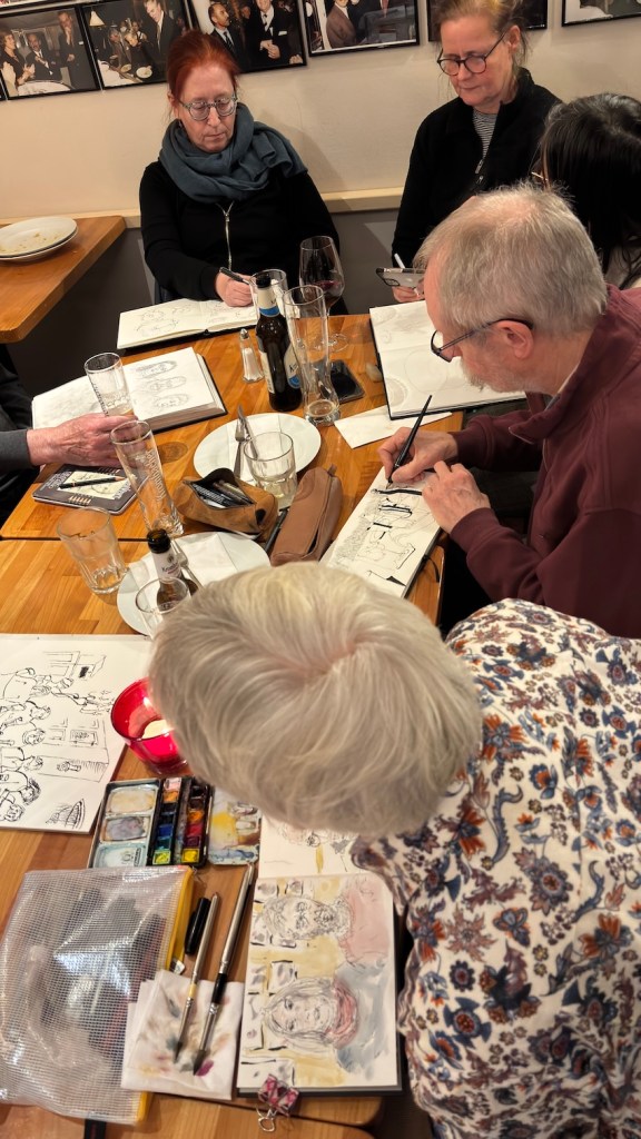 Es war ziemlich gemütlich im Kaufhof Restaurant. Man konnte gut zusammen sitzen und mal ein bisschen quatschen beim Zeichnen. Hier die bisherigen Ergebnisse des Abends:
