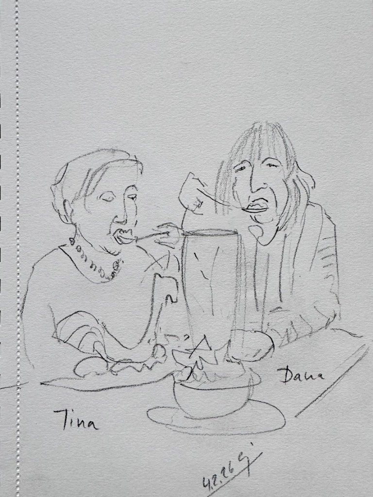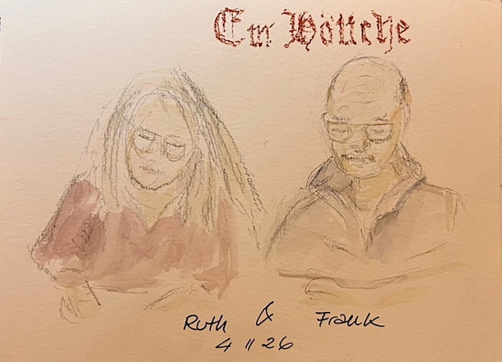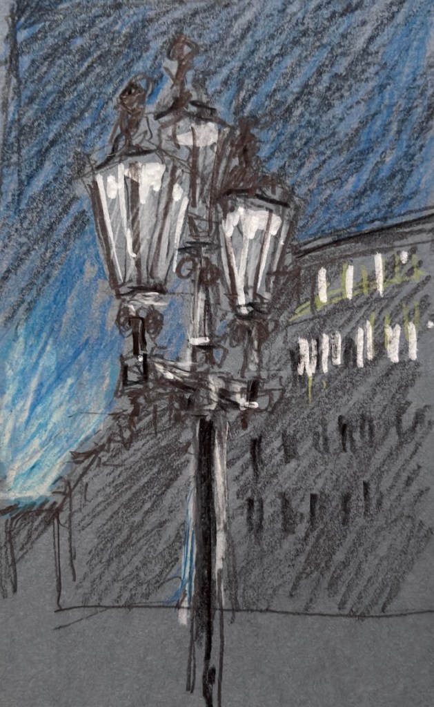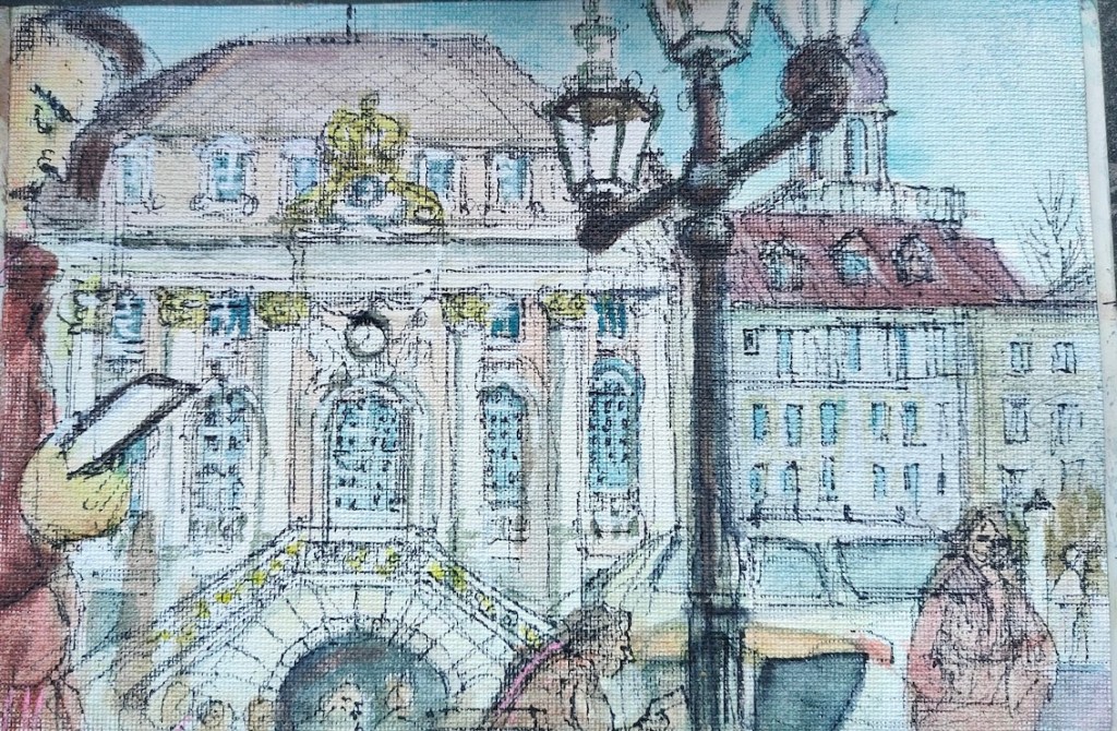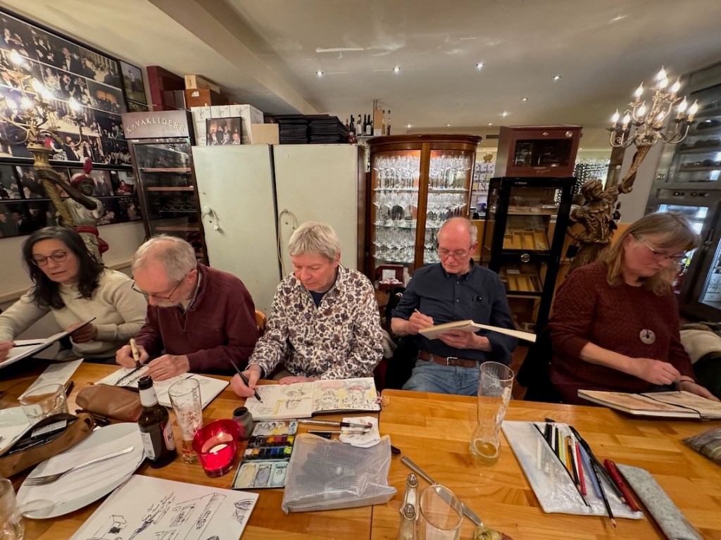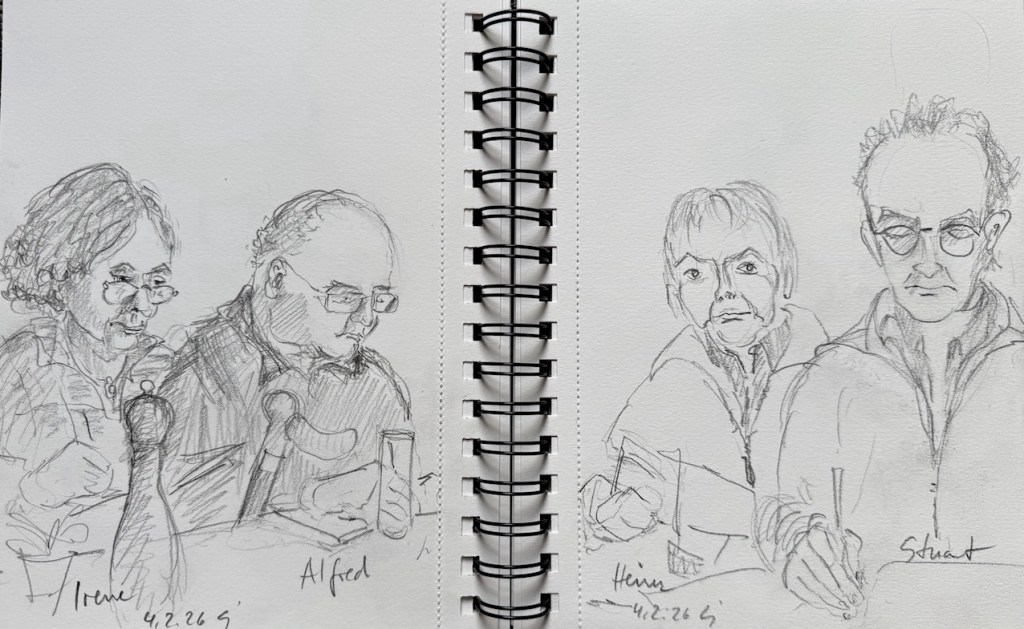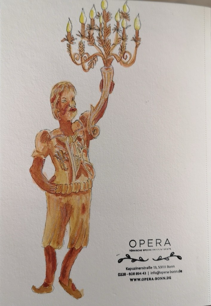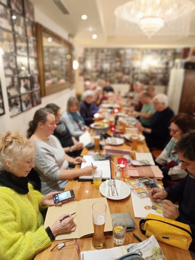 Damit ist das Restaurant an der Oper gemeint, das mit den leckeren türkischen Spezialitäten und den großen Kronleuchtern, Kapuzinerstraße 13, nicht die Oper selbst. Wir haben dort am nächsten Mittwoch, dem 17.12.25, für uns ab 18:00 Uhr einen Tisch für 20 Personen reserviert. Es darf gezeichnet, gemalt, getrunken, gegessen, geredet und gelacht werden! Und natürlich noch viel mehr außer: „Bitte nicht so viel rumlaufen!“ ….keine Ahnung, warum wir mal so einen Eindruck hinerlassen haben?! Muss wohl eine andere Zeichengruppe gewesen sein! Aber das kriegen wir auch hin, denke ich. Gegen 19:30 Uhr machen wir eine Vernissage am Tisch, Bilder rumgeben oder so, und das Gruppenfoto machen wir dann draußen vor der Tür um 20 Uhr. Oder auch anders, das sehen wir vor Ort, wir sind ja flexibel!