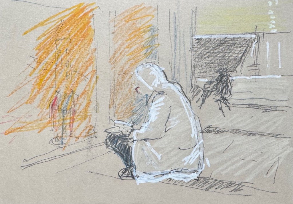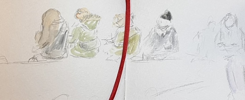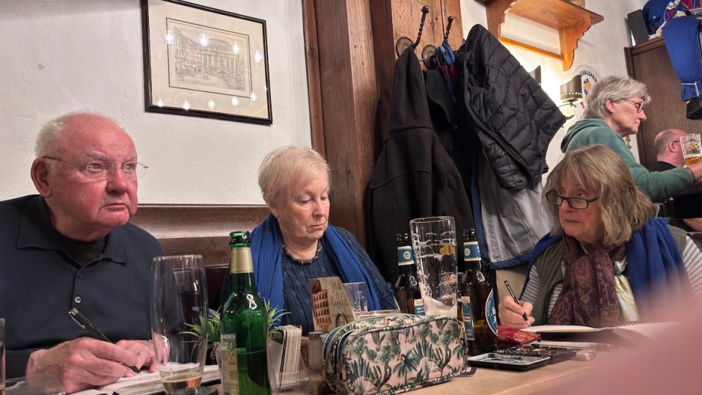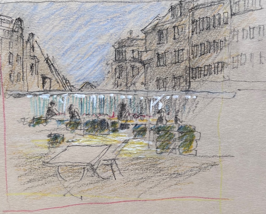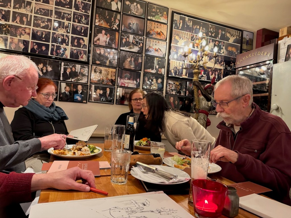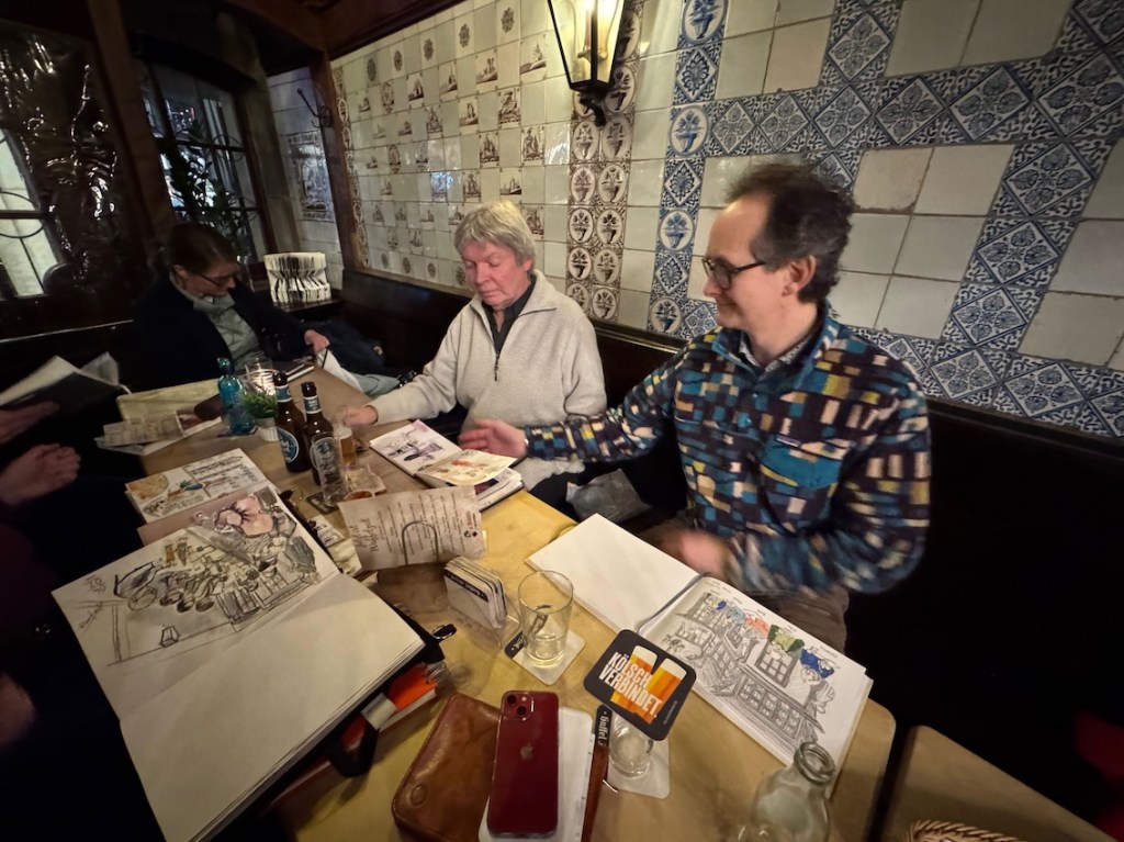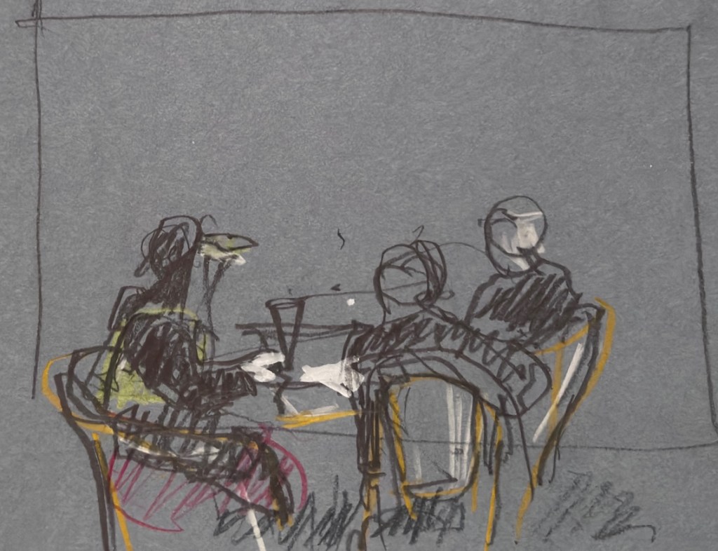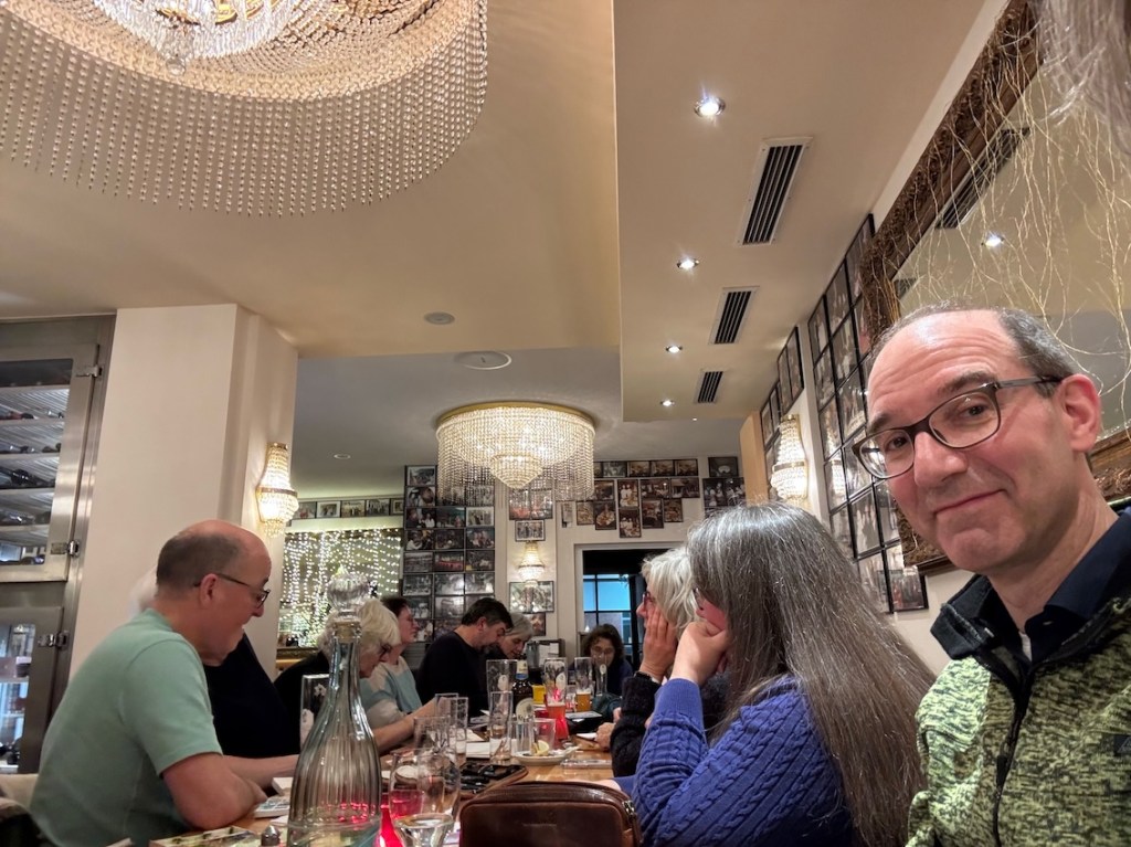 Damit ist das Restaurant an der Oper gemeint, das mit den leckeren türkischen Spezialitäten und den großen Kronleuchtern, Kapuzinerstraße 13, nicht die Oper selbst. Wir haben dort am nächsten Mittwoch, dem 17.12.25, für uns ab 18:00 Uhr einen Tisch für 20 Personen reserviert. Es darf gezeichnet, gemalt, getrunken, gegessen, geredet und gelacht werden! Und natürlich noch viel mehr außer: „Bitte nicht so viel rumlaufen!“ ….keine Ahnung, warum wir mal so einen Eindruck hinerlassen haben?! Muss wohl eine andere Zeichengruppe gewesen sein! Aber das kriegen wir auch hin, denke ich. Gegen 19:30 Uhr machen wir eine Vernissage am Tisch, Bilder rumgeben oder so, und das Gruppenfoto machen wir dann draußen vor der Tür um 20 Uhr. Oder auch anders, das sehen wir vor Ort, wir sind ja flexibel!