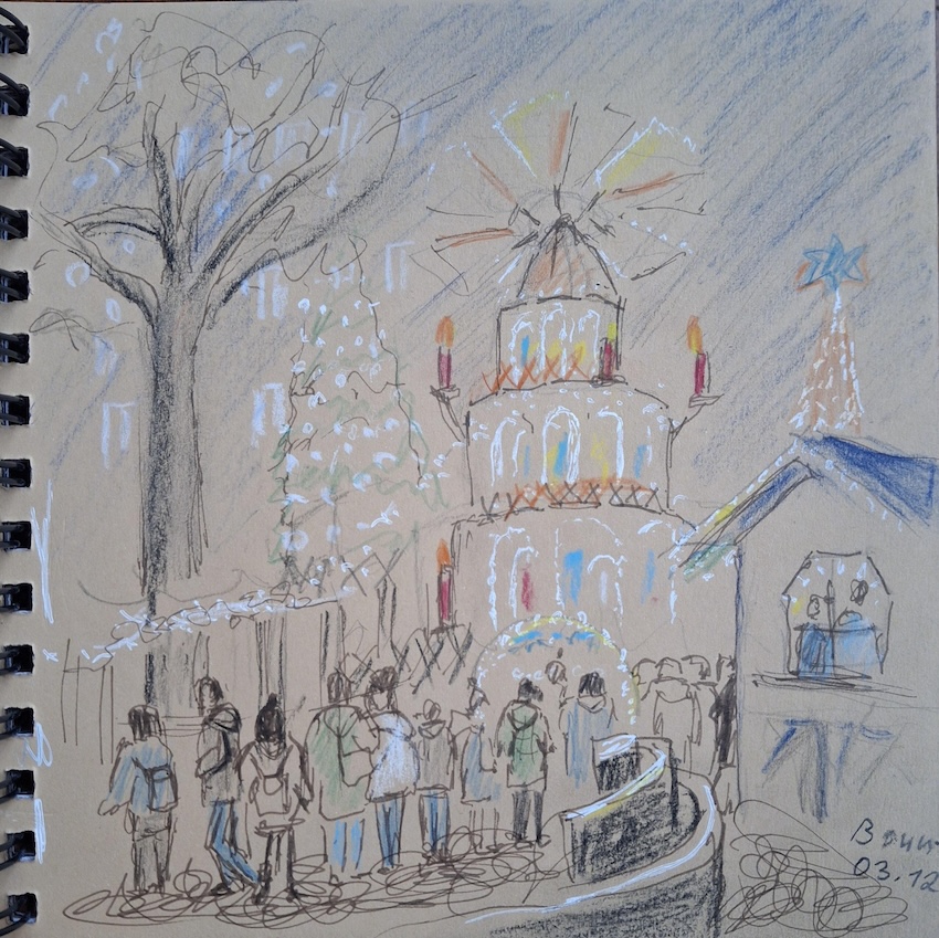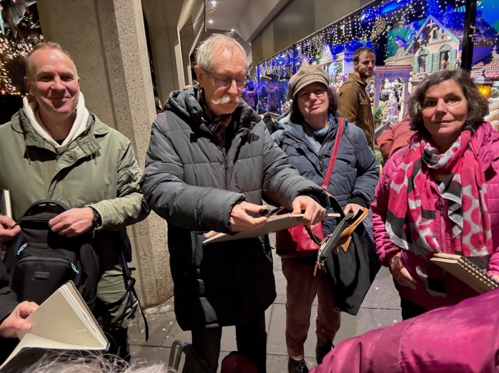 Die ersten Bilder sind schon da … Eine Handvoll Mitzeichnende trauten sich letzten Mittwoch in die Innenstadt. Die Temperaturen waren ganz ok, der Andrang auf dem Weihnachtmarkt war am Limit, aber es ging alles gut.
