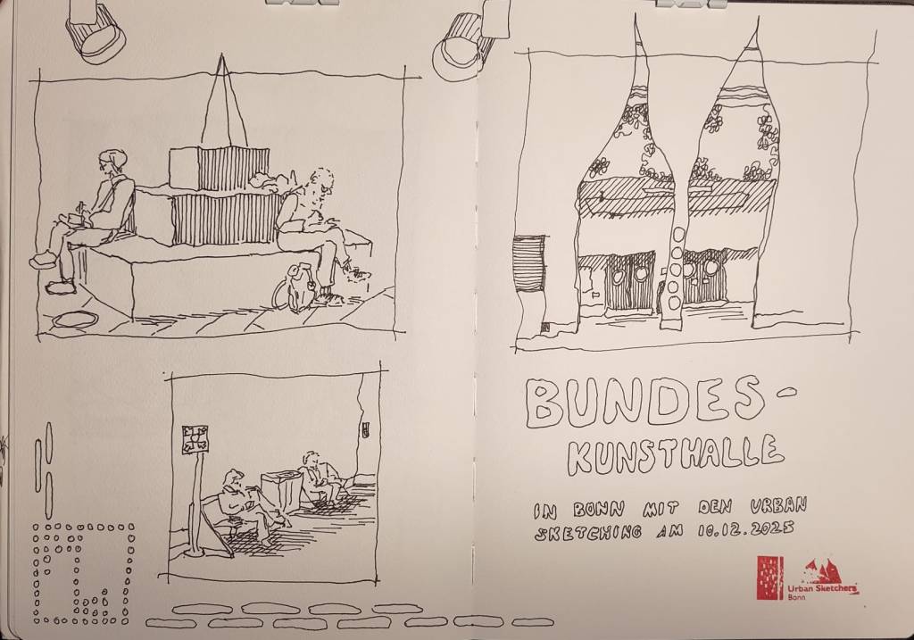 Langsam wird es kalt. Wer weiß, vielleicht kommt noch ein milder Mittwoch und wir treffen uns wieder in der Stadt. In der Zwischenzeit, gehen wir nächsten Mittwoch, den 10.12.2025, ab 18:00 Uhr ins Kunstmuseum (KuMuBo) oder in die Bundeskunsthalle (BuKuHa) zeichnen; ist Euch überlassen, sie liegen direkt neben einander.