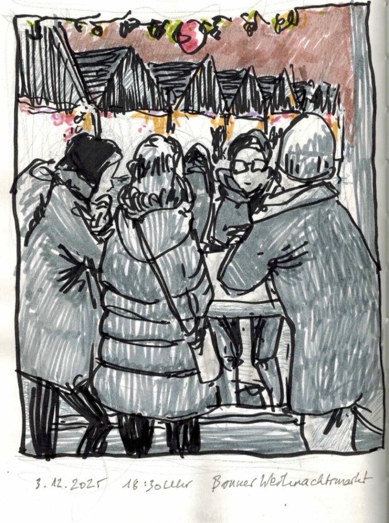 Stuart – wie schön es ist, auf dem Bonner Weihnachtsmarkt die fettige Luft zu atmen und die unfreiwilligen Opfer meiner Skizze zu beobachten