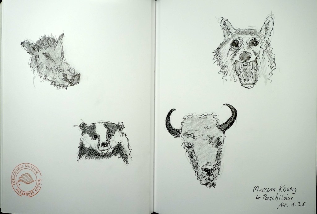 Wie es unsere lieb gewordene Tradition ist, starten wir auch dieses Jahr die Saison im allseits beliebten Museum König. Am Mittwoch, dem 14. Januar 2026, geht es dort ab 18 Uhr los – wer mag, geht einfach früher hin. Einen gemeinsamen Start gibt es nicht, aber wenn man im Museum rumläuft, sollte man andere Sketcher treffen und ansprechen können. Mit der ArtCard kommt ihr kostenfrei hinein, sonst kostet der Eintritt regulär 6 €.