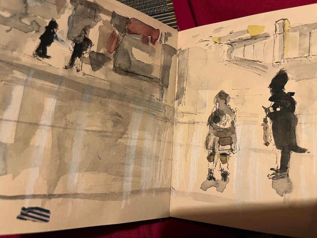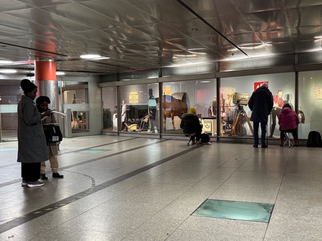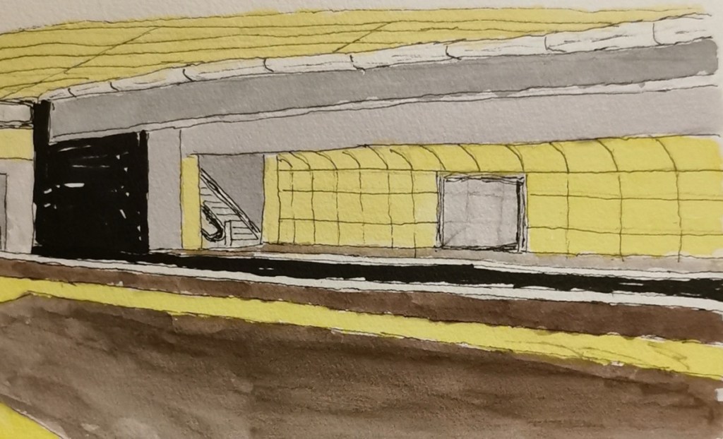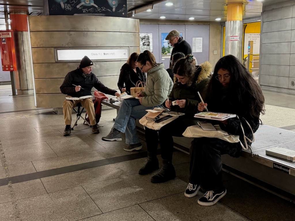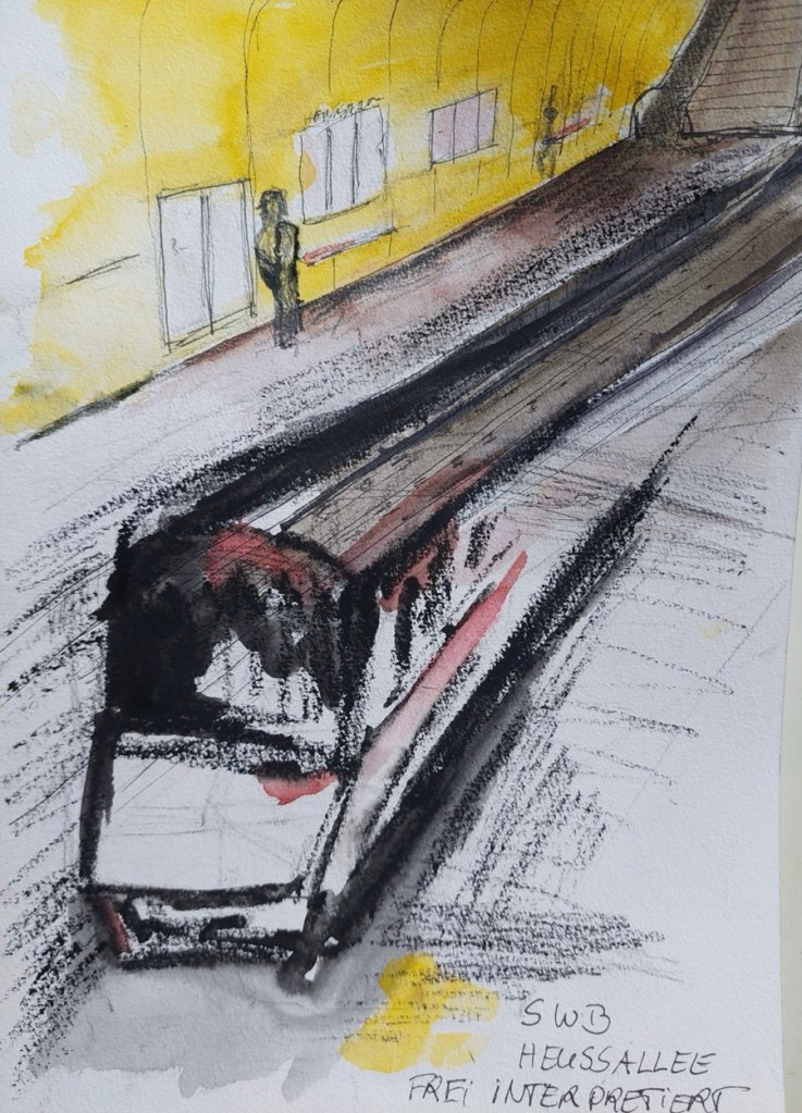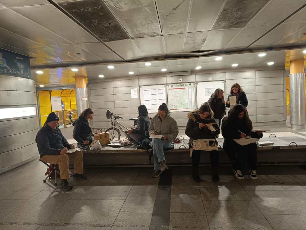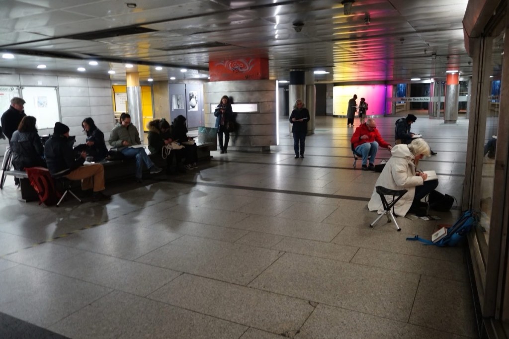 Nach 18:00 Uhr müssen wir leider draußen bleiben. Aber wir machten uns trotzdem einen schönen Zeichenabend im zugigen U-Bahnhof!