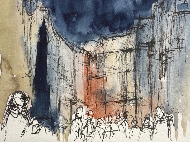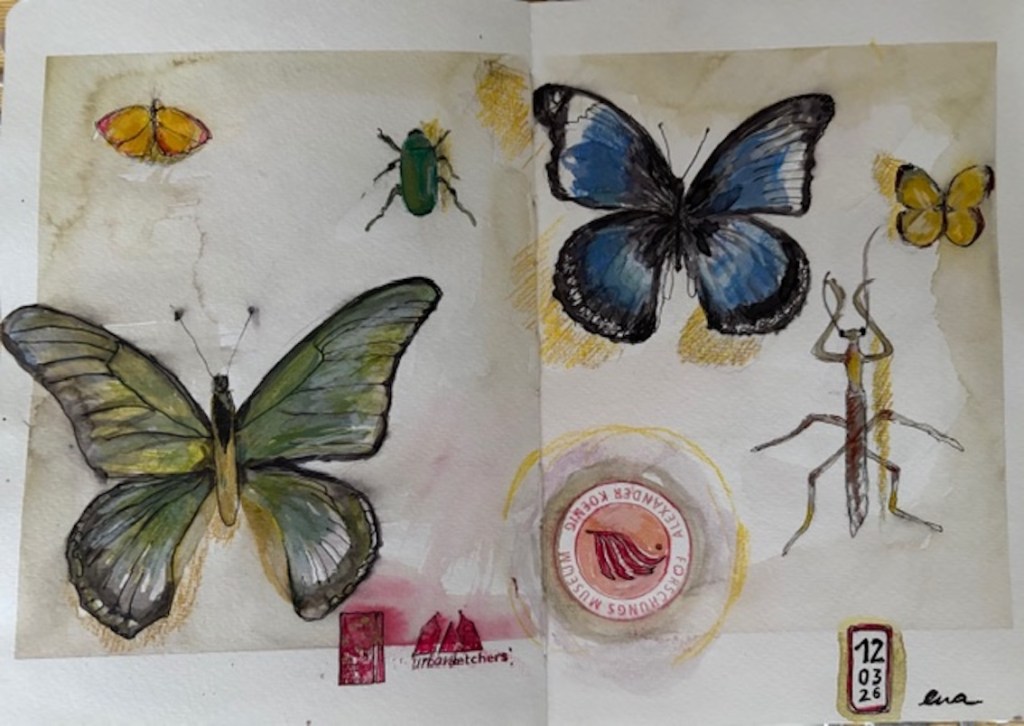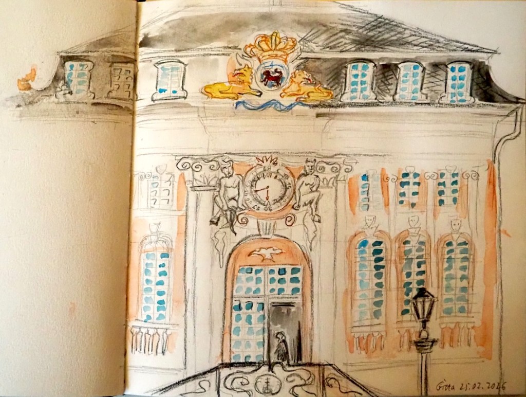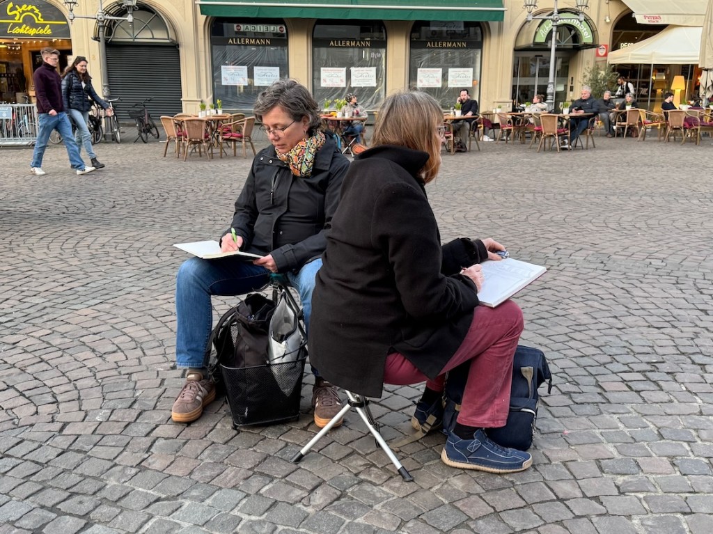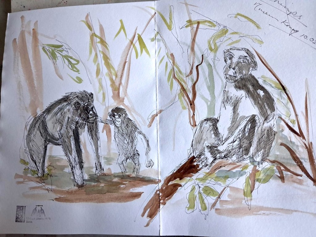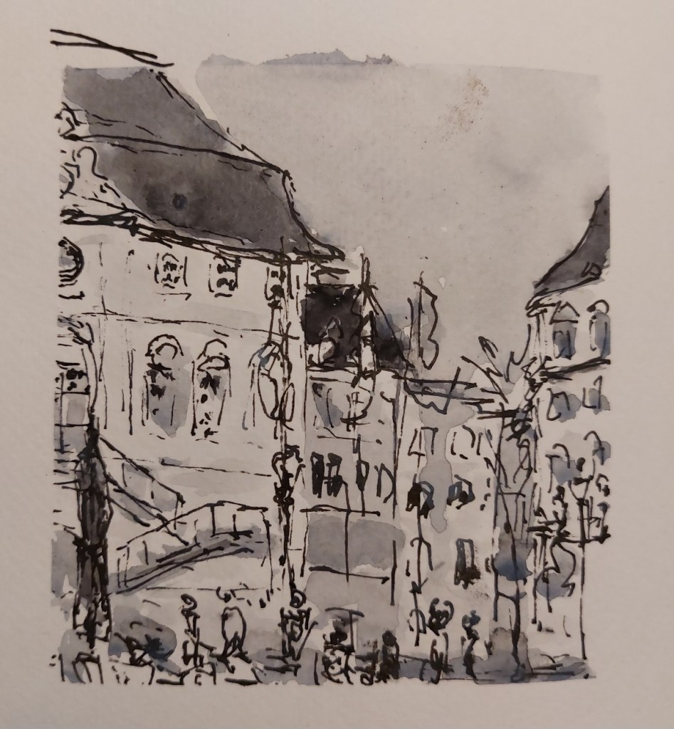 Für den nächsten Mittwoch, den 25.02.2026, ist herrlichstes Frühlingswetter angesagt mit Temperaturen bis zu 20° C. Wir treffen uns auf dem Marktplatz in der Bonner Innenstadt ab 18 Uhr oder früher und vielleicht ist ein erster echter Urban Sketch in diesem Jahr möglich. Der Platz, der Markt, das Rathaus, das Sternhotel, das Metropol – Motive gibt´s genug! Wenn es doch zu kalt wird oder der Regen schauert, haben wir dort genügend Einkehrmöglichkeiten: das Thalia mit dem Café im 1. Stock, das Café Miebachs, das Teehaus u.v.m.. Zur Vernissage treffen wir uns um 19:30 Uhr am Eingang des Thalia vor einem Schaufenster, das noch beleuchtet ist.