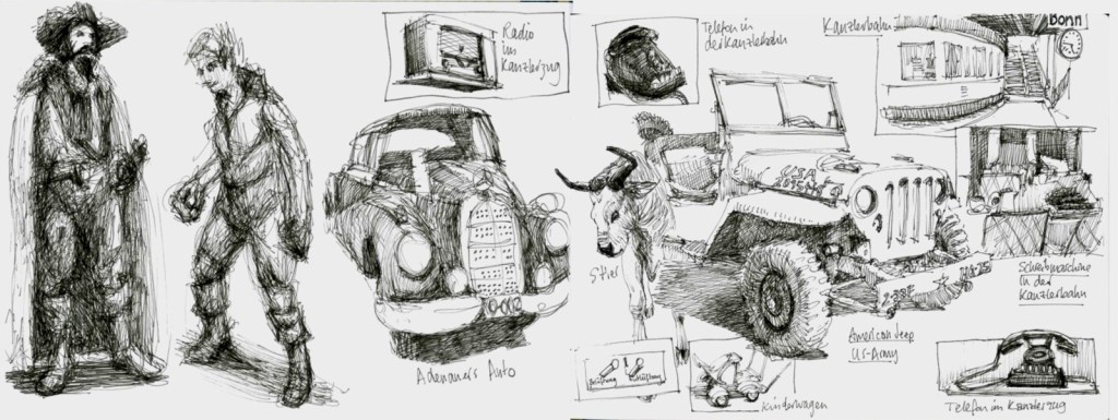 Walter – eine Skizze einer Skizze eines gezeichneten Statisten bei Wim WendersAlfred – in der Wim Wenders AusstellungWalter – der Mantel aus dem Film ‚Ein Himmel über Berlin‘