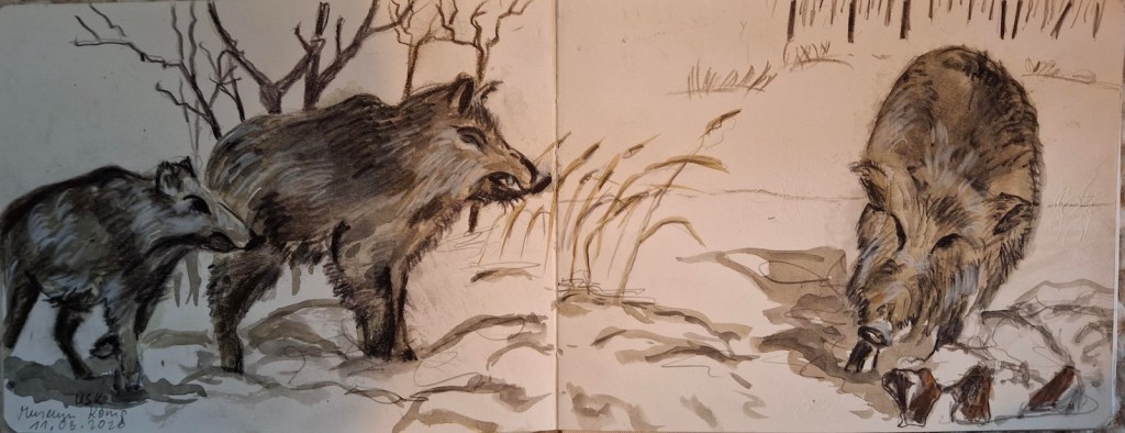 Wenn der Karneval vorbei ist und die Fastenzeit beginnt gibt´s Fisch. Bei uns ist das – auch schon ein wenig traditionell – „Fische zeichnen“ im Museum König. Dort ist nämlich im Untergeschoss eine Abteilung mit Aquarien, in denen lebende Fische und weiteres Unterwassergetier herumschwimmen. Diese besuchen wir am Aschermittwoch, dem 18.2.2026, ab 18 Uhr oder früher und halten die munteren Gesellen mit dem Stift auf Papier fest. Ihr findet es, wenn Ihr vom Eingang aus euch gleich rechts haltet, durch die Ausstellungsräume hindurch, in der hinteren Ecke ist die Treppe nach unten. Wer sich das nicht zutraut oder lieber sonst im Museum zeichnet, sollte diesmal sein Augenmerk auf Wassertiere lenken: Wasservögel, Biber, Bisamratten, Seehunde oder ähnliches. Die Vernissage machen wir um 19:30 Uhr in der Eingangshalle des Museums.