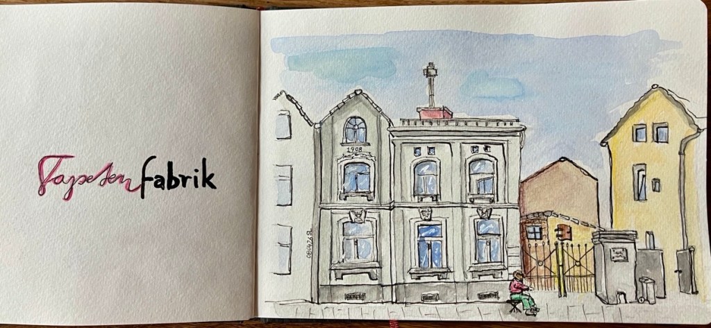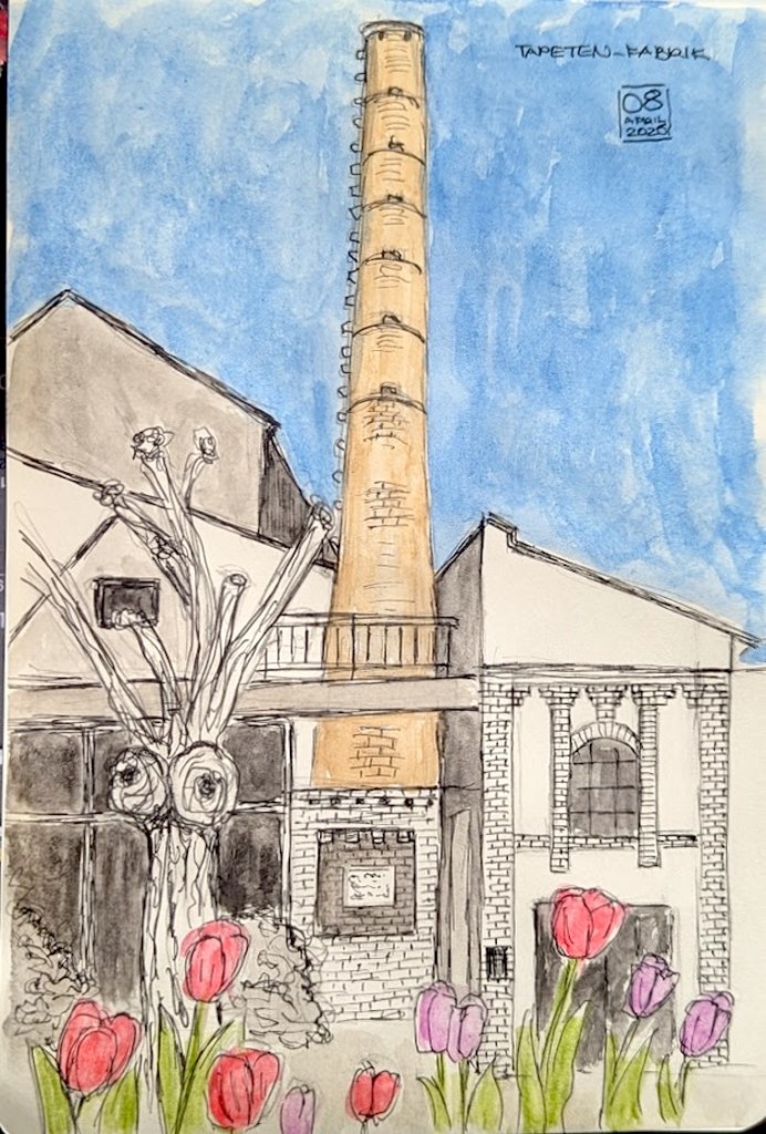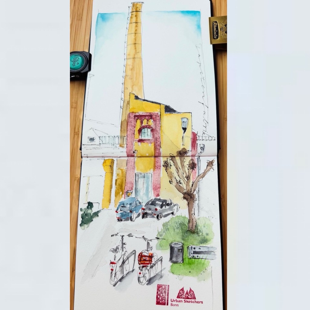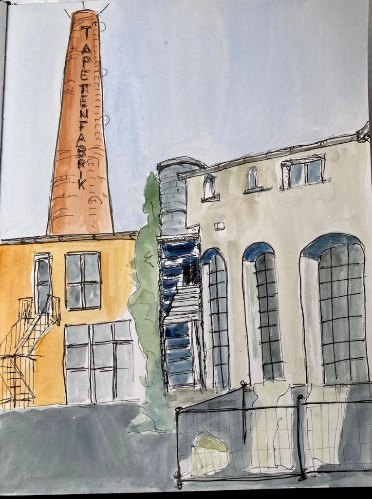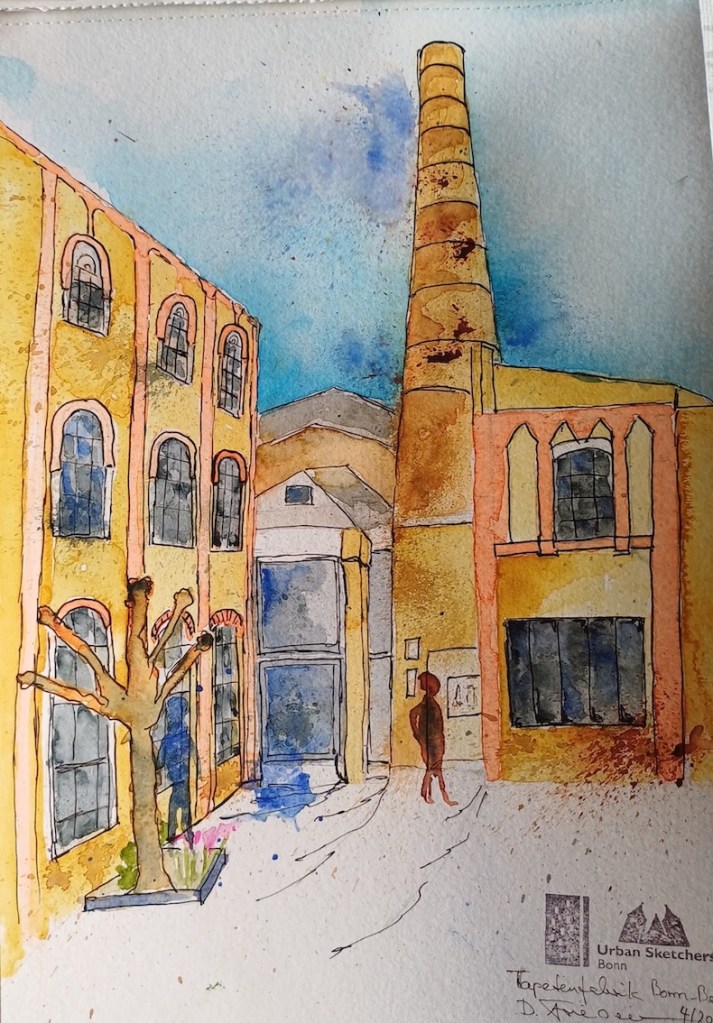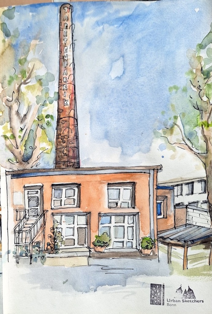 Wir haben ein wunderbares Angebot von Steffi von den Urban Sketchern Brühl bekommen. Sie lädt uns ein, auf dem Gelände der Tapetenfabrik in Beuel zu zeichnen. Da sie dort ihr Atelier hat, haben wir die Möglichkeit, im Notfall auch drinnen zu zeichnen, falls das Wetter ganz schlecht sein sollte und wir alle reinpassen. Steffi kann uns um 18 Uhr eine kleine Führung ums Gelände geben und uns die schönsten Ecken und Innenhöfe zeigen.