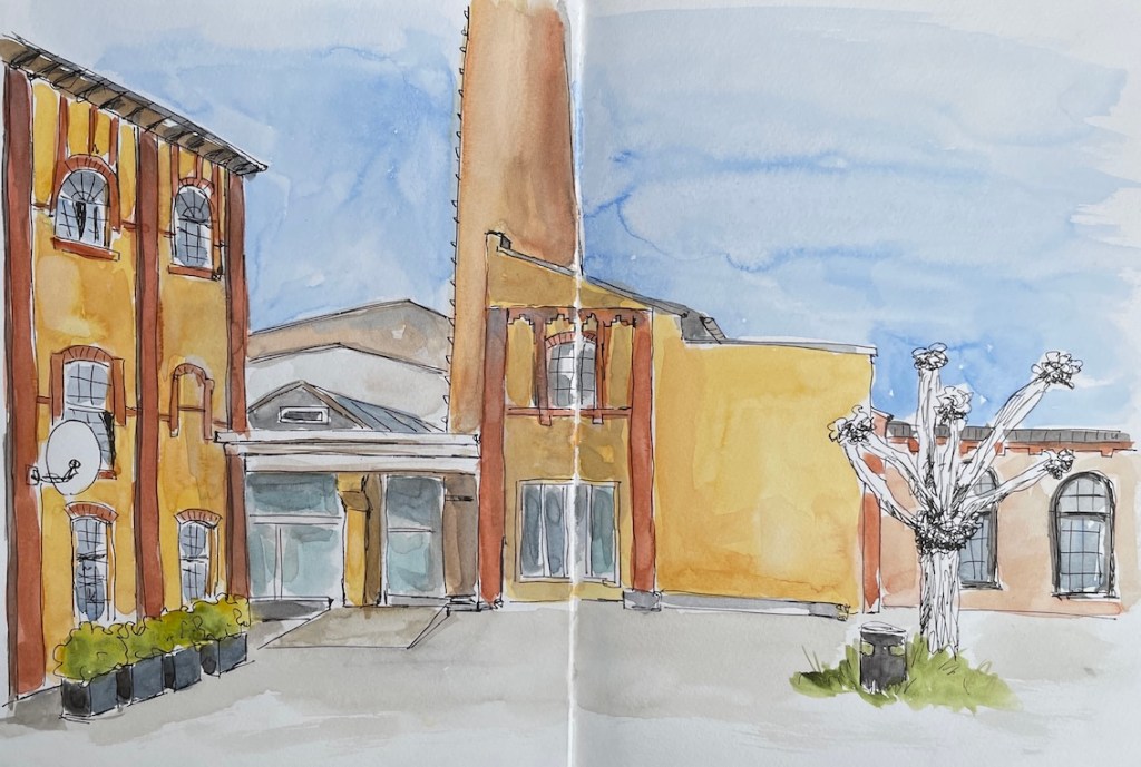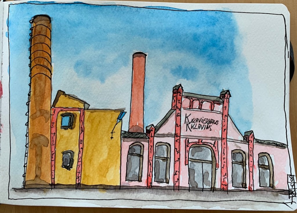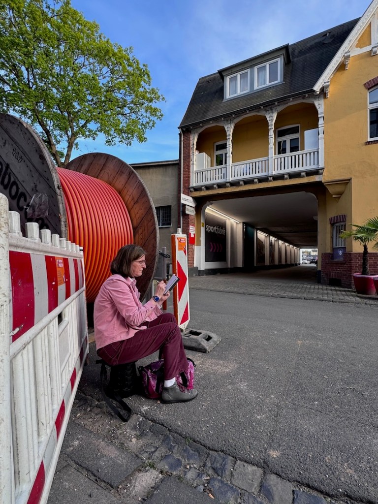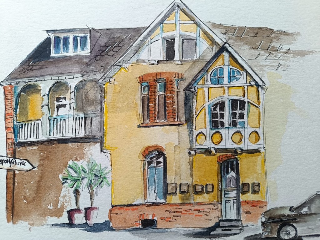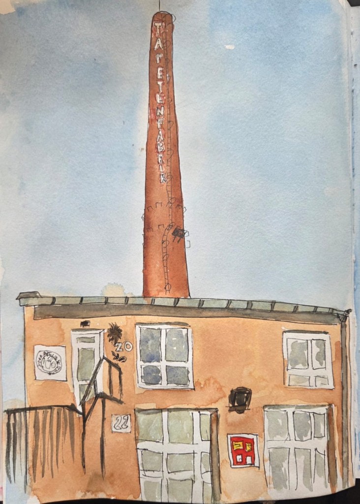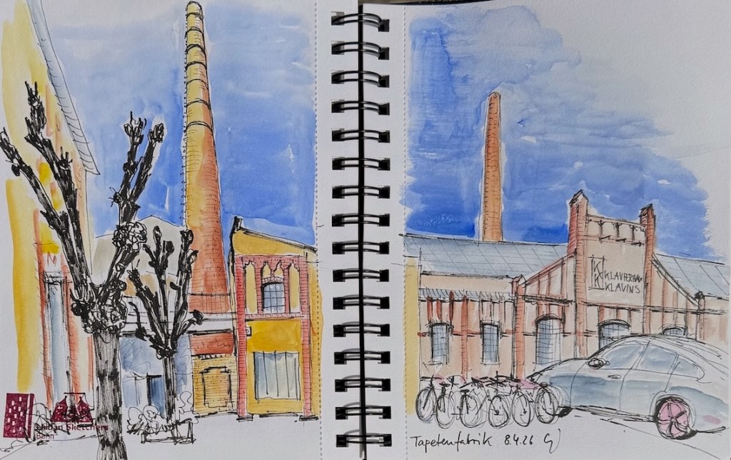 Wir haben ein wunderbares Angebot von Steffi von den Urban Sketchern Brühl bekommen. Sie lädt uns ein, auf dem Gelände der Tapetenfabrik in Beuel zu zeichnen. Da sie dort ihr Atelier hat, haben wir die Möglichkeit, im Notfall auch drinnen zu zeichnen, falls das Wetter ganz schlecht sein sollte und wir alle reinpassen. Steffi kann uns um 18 Uhr eine kleine Führung ums Gelände geben und uns die schönsten Ecken und Innenhöfe zeigen.