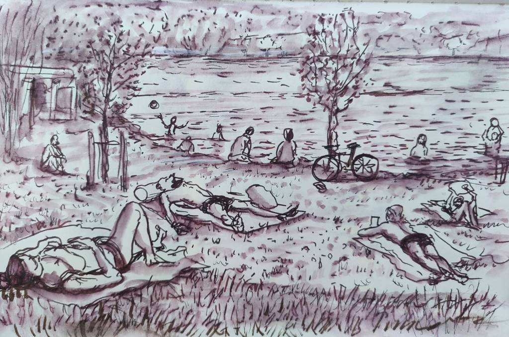 Sandra – Sketcher auf der Bank