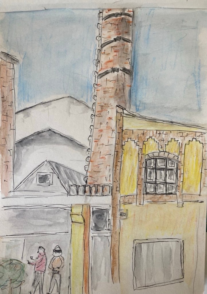 Betina – in einem ruhigen Innenhof… Kirsten – MitzeichnerInnen Julia – Schornstein an der Tapetenfabrik