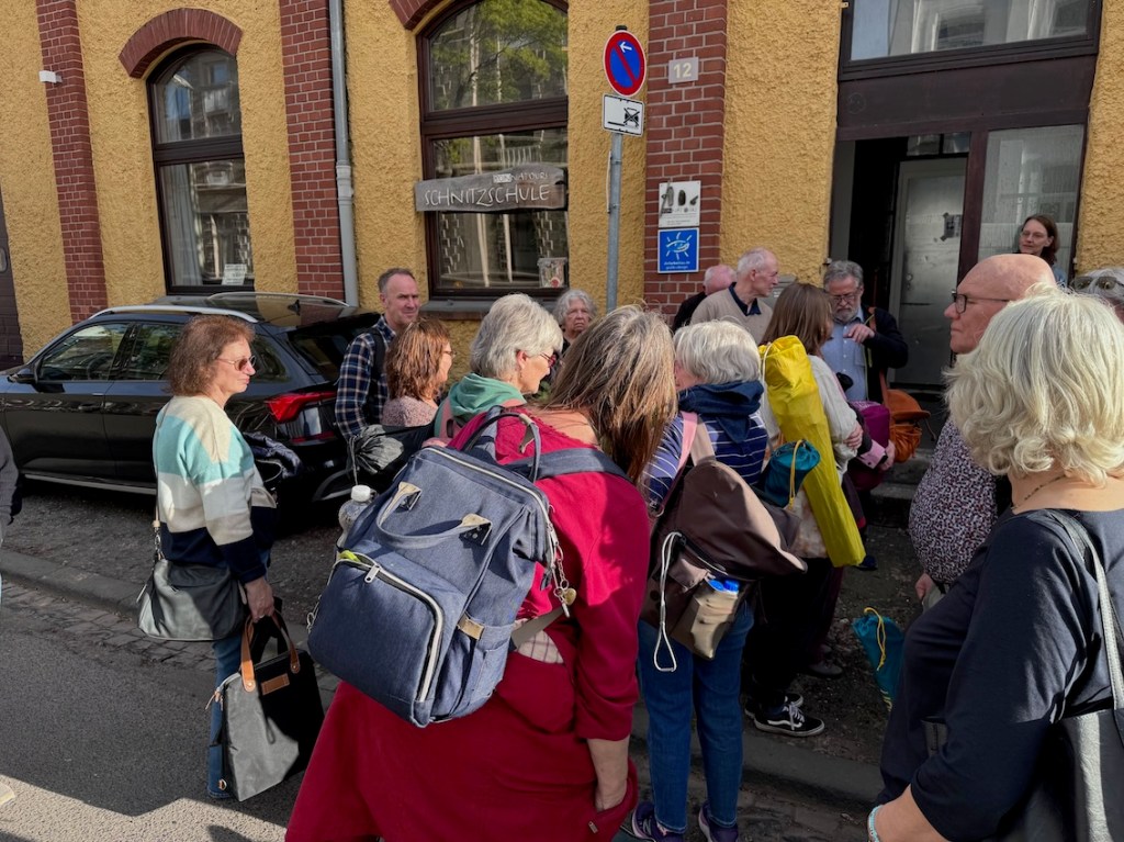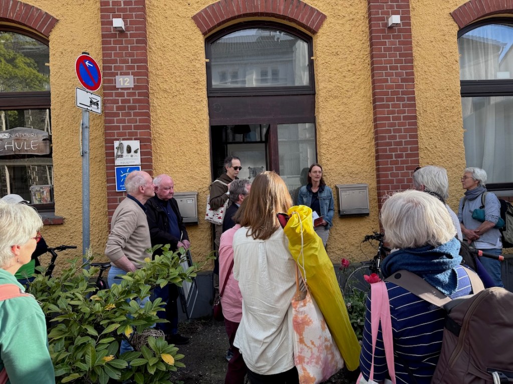 Großer Andrang vor der Auguststr. 12, wo uns Steffi eine kurze Einführung gibt: