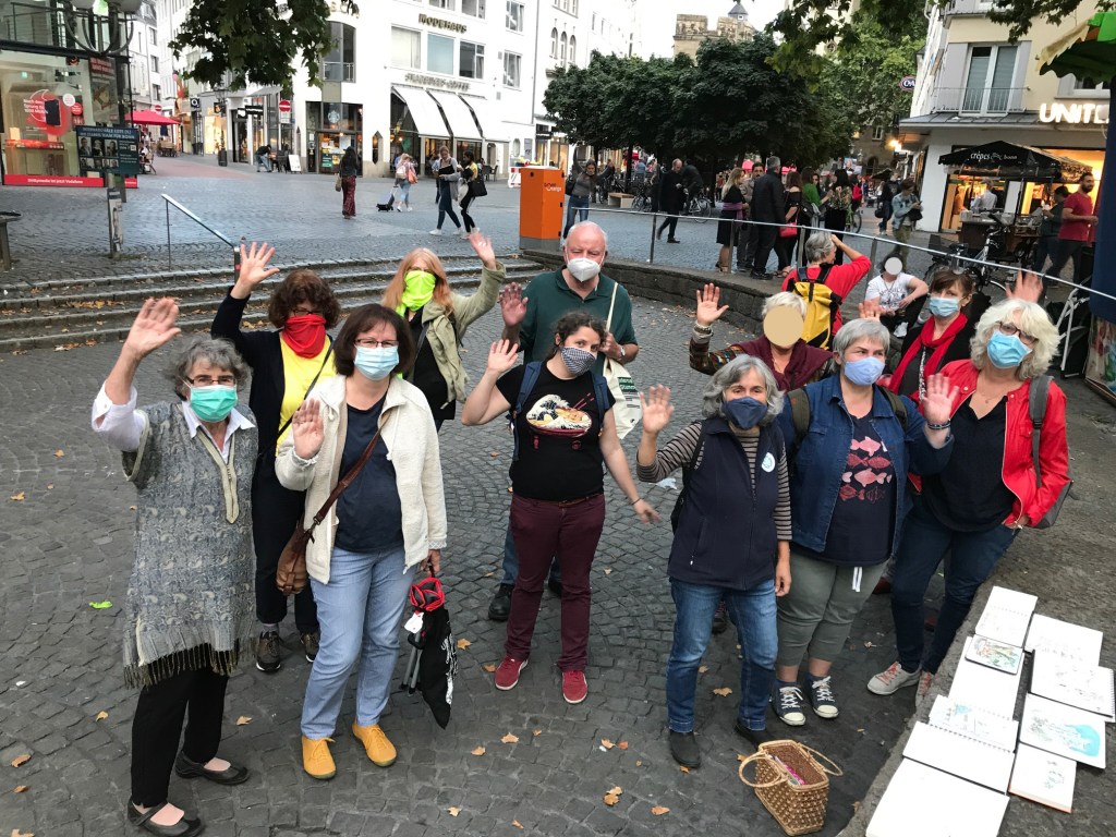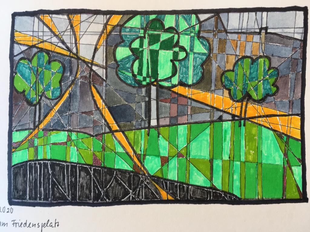 Nächsten Mittwoch, den 9.9.2020, treffen wir uns am südlichen Ende des Friedensplatzes, Nähe Sternstraße, um 18 Uhr. Wer viel Trubel mag, sucht sich hier ein Plätzchen zum Zeichnen, wer etwas mehr Ruhe liebt, geht auf die benachbarten Plätze und Straßen z.B. am Windeck Bunker. Motive gibts auf jeden Fall genug dort!