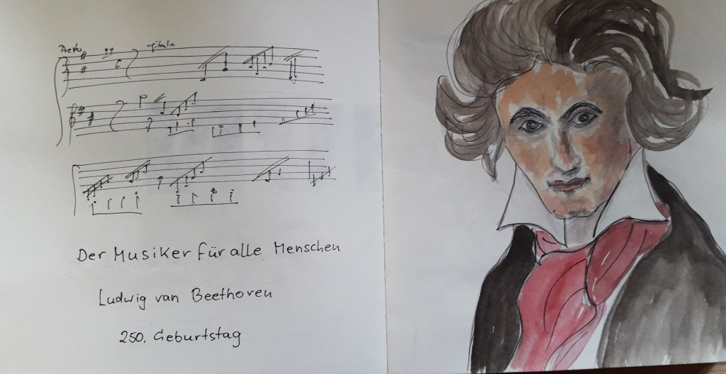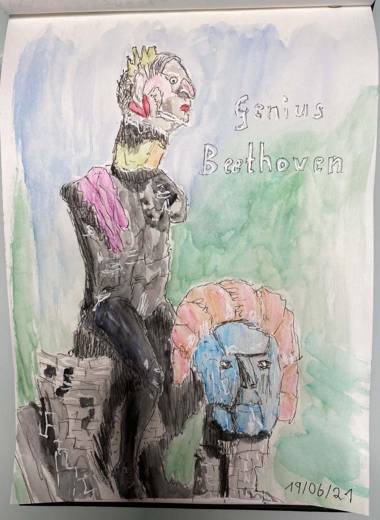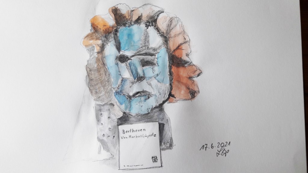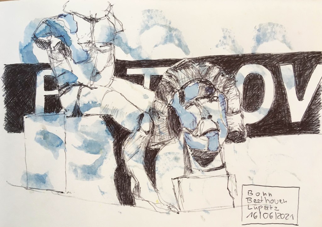 Beethoven darf in Bonn nicht fehlen, und so widmen wir ihm unsere Aufmerksamkeit in Skizzen diese Woche. Zeigt uns, was Ihr mit ihm verbindet; spürt auf, wo er im Bonner Stadtbild zu sehen ist!Geheimtip dafür: der Genius Beethoven als Skulptur von Markus Lüpertz im Stadtgarten (zwischen Adenauer Allee und Altem Zoll) ist besonders schön zu zeichnen am frühen Abend, z.B. Mittwoch nach 17 Uhr.