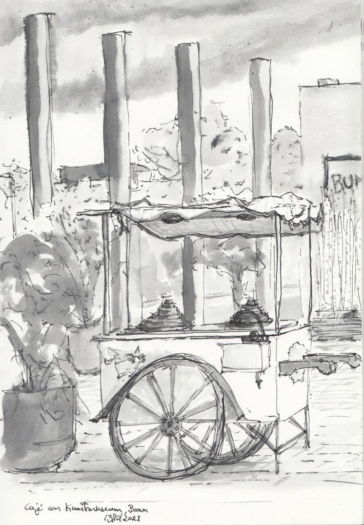 Marylin saß im Café beim KunstmuseumRobert – Snackwagen vor der BuKuHa