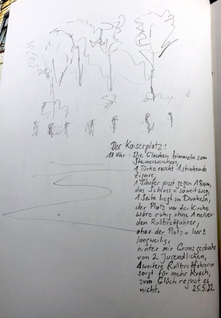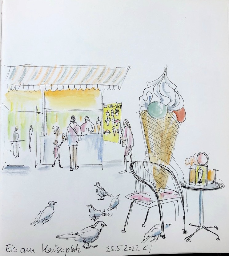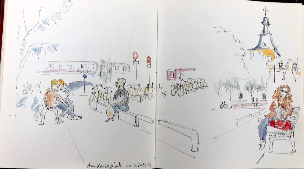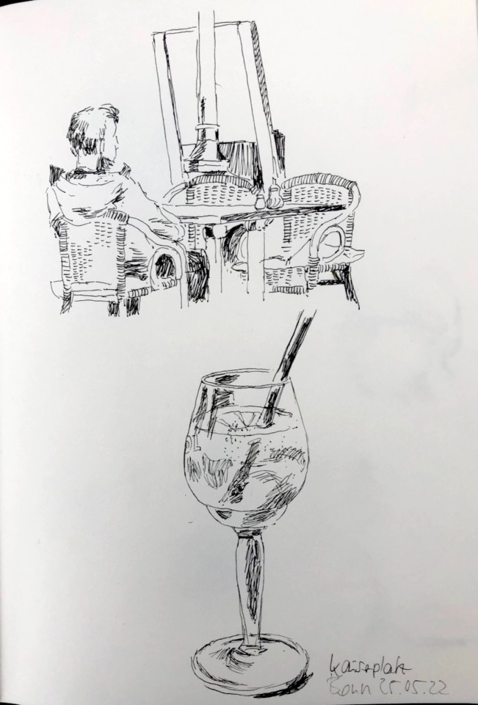 Nächsten Mittwoch, den 25.5.2022, treffen wir uns ab 18 Uhr am Kaiserplatz, Bonn Zentrum, bei den Brunnen. Städtisches Leben, Leute beim Eisessen, der Buchkiosk, Haribo, die Kirchen und das Schloss…genügend Motive finden sich dort auf jeden Fall! Die Vernissage ist gegen 19:45 Uhr am Brunnen.