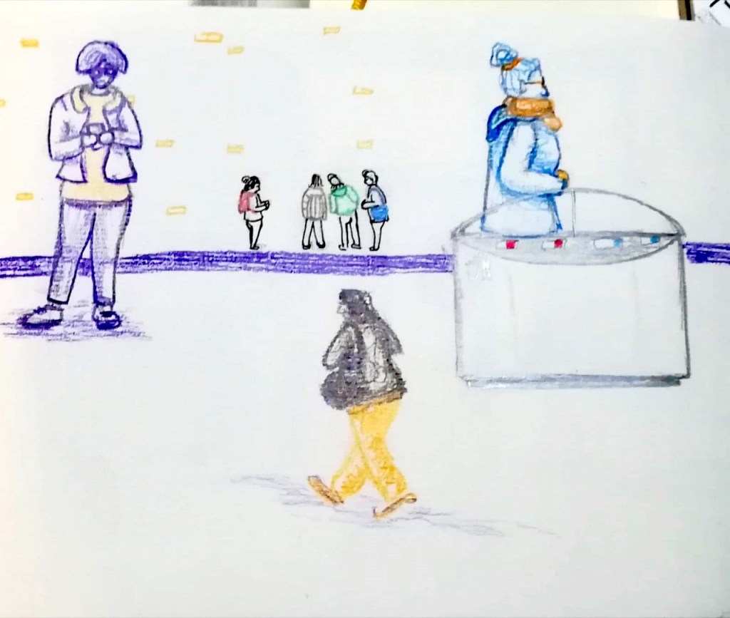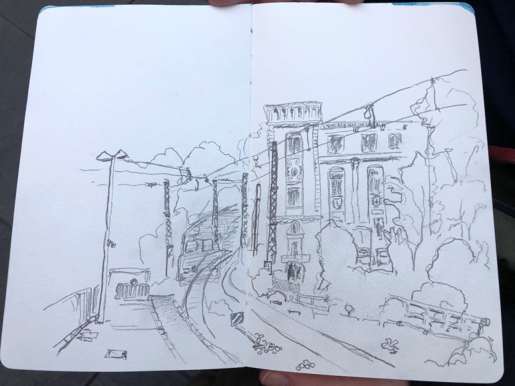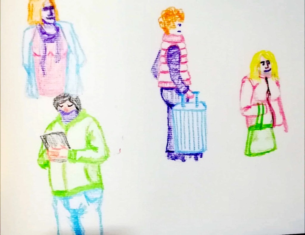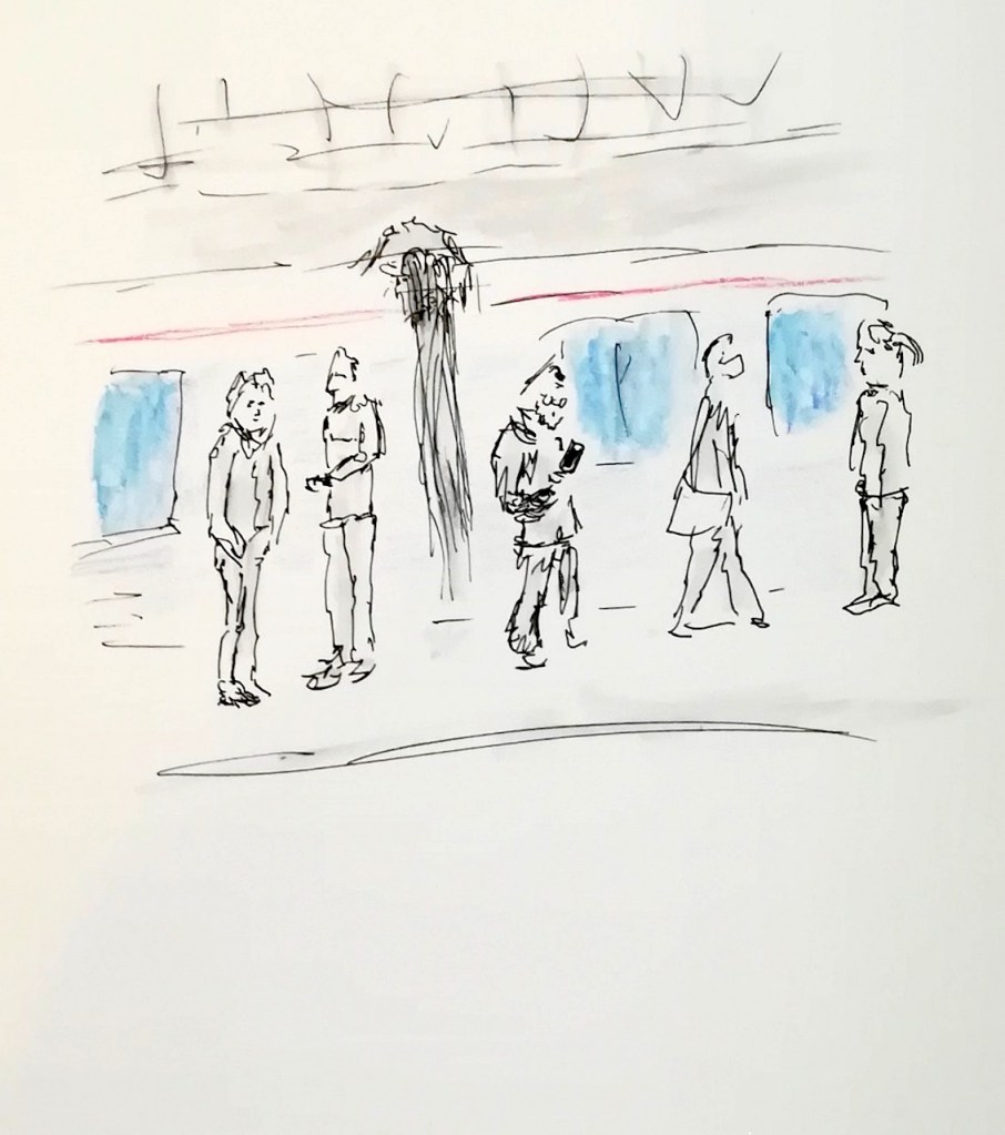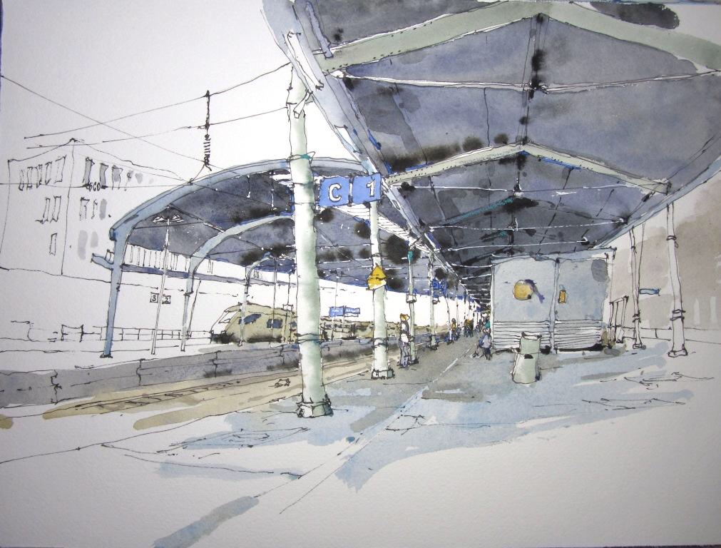 Hektische Betriebsamkeit und langwährendes Warten wechseln sich ab auf dem Bahnhof; hier unsere Skizzen: