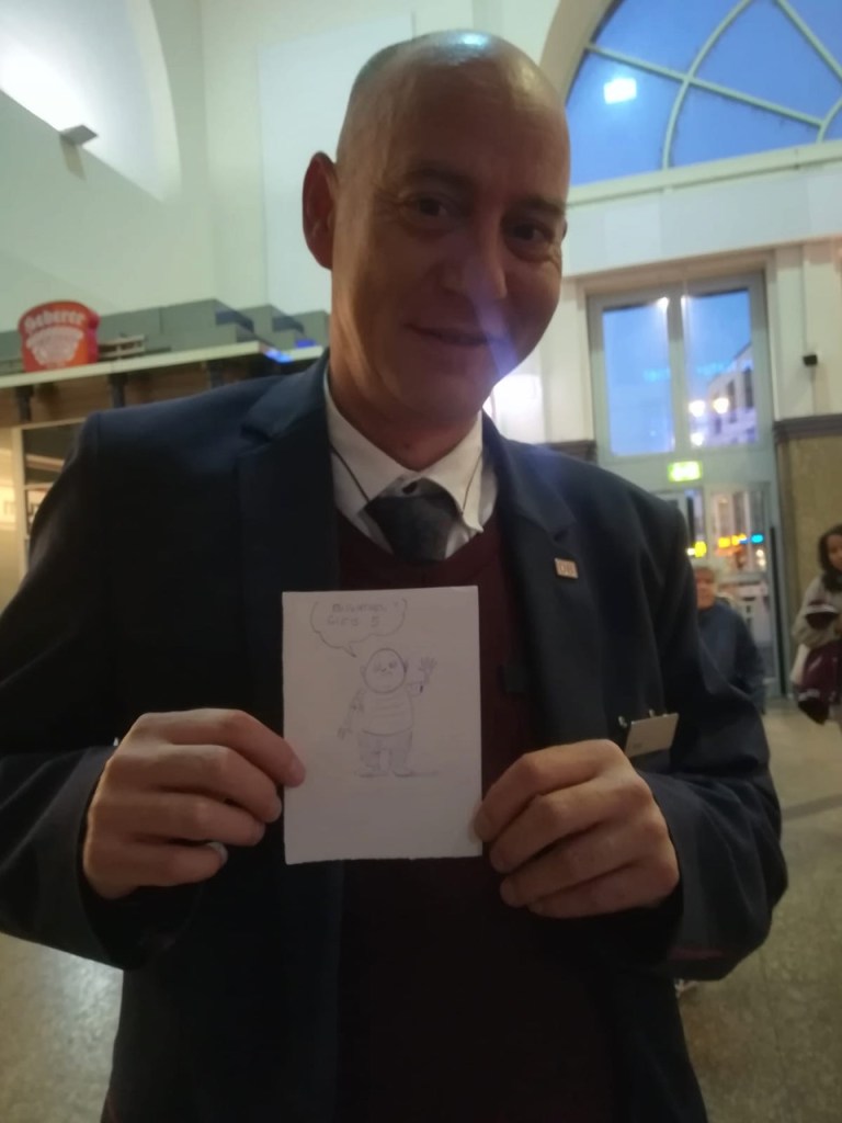 Danke für das Posten meiner Skizze, aber mein Name ist Natalie Ilnitska, nicht Grigory -Die Lok in der Bahnhofshalle 😉