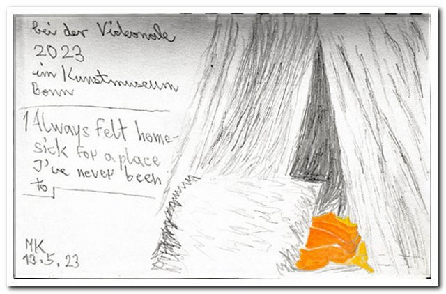 Cornelia H. – 2 Besucherinnen in der Ausstellung; was hängt denn da?Katja – im Foyer des KunstmuseumsMiriam – ein kuscheliges Eckchen bei der Videonale im Kunstmuseum Bonn