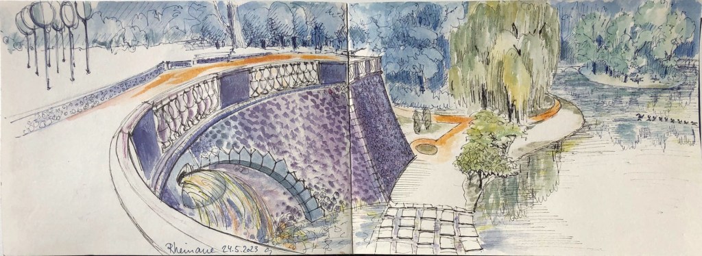Am kommenden Mittwoch, dem 24.5.2023, treffen wir uns im Grünen, in der Rheinaue. Treffpunkt soll sein dort, wo der rote Punkt auf der Karte ist, also quasi vor dem japanischen Garten. Dieser ist z.Z. wunderschön durch die blühenden Rhododendren, aber auch der Blindengarten, der Löffelwald oder ein Blick vom Freilufttheater in die Weite sind schöne Motive – lasst Euch inspirieren! Die Vernissage machen wir um 19:45 Uhr vor den Toren des japanischen Gartens.