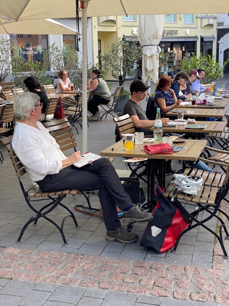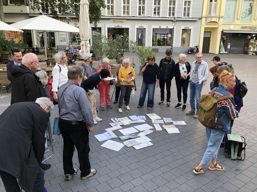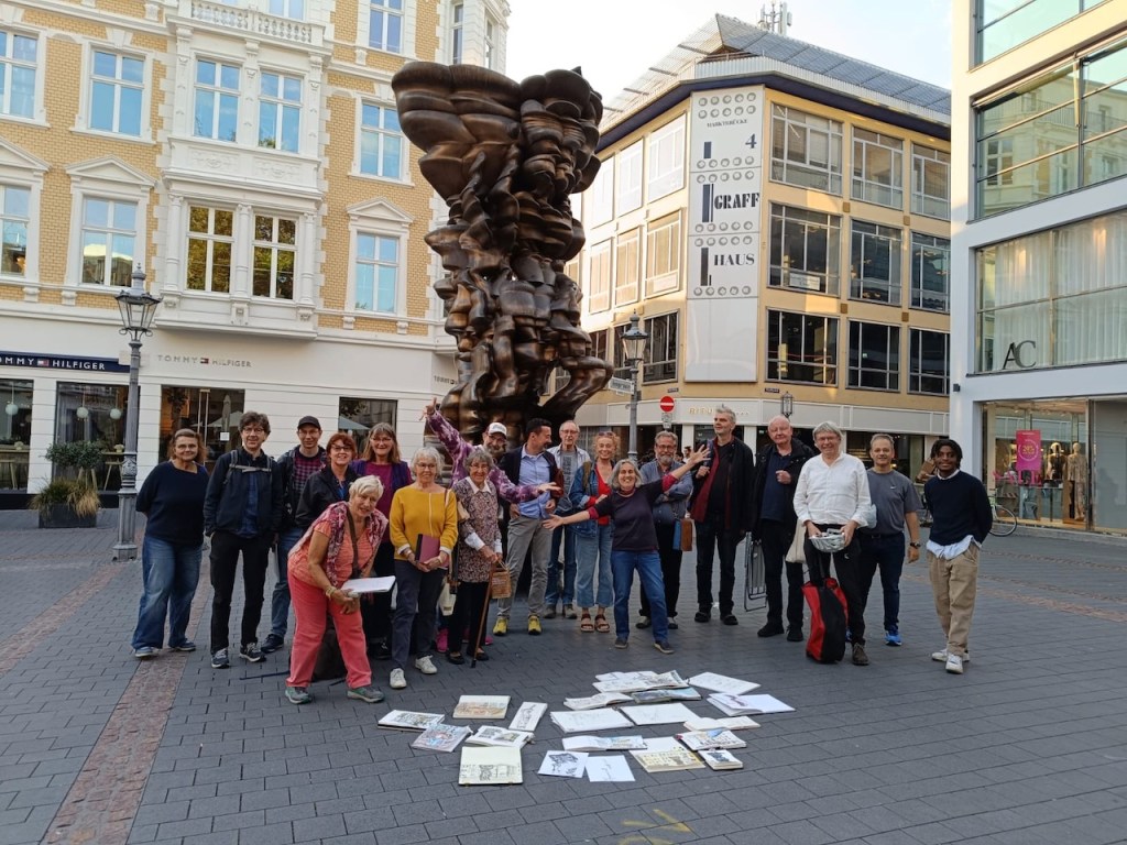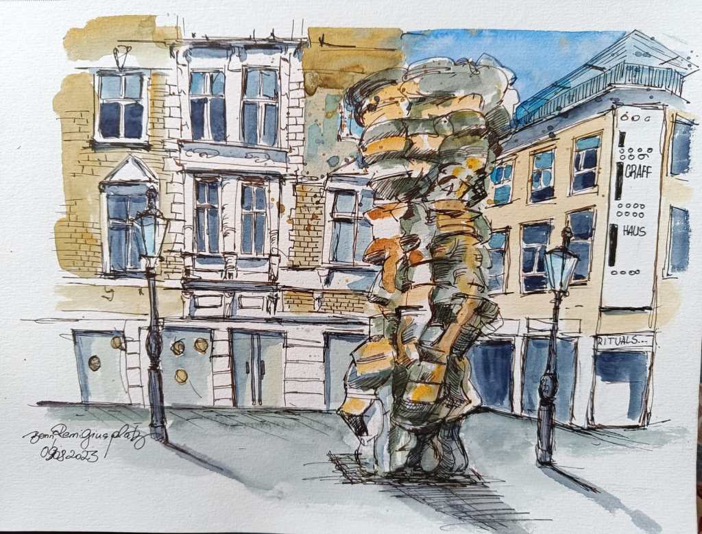 Am nächsten Mittwoch, dem 9.8.2023, treffen wir uns ab 18 Uhr (oder früher) am Remigiusplatz in der Bonner Innenstadt. Das ist der kleine Platz zwischen Münster- und Marktplatz, wo die Skulptur von Tony Cragg steht, das Bistro „La Vie est Bonngout“ einlädt, der ehemalige Blumenmarkt. Die Bushaltestelle „Bonn Markt“ ist gleich um die Ecke. Die Blicke in die Straßen oder das Treiben im Café sind auf jeden gute Motive, abgesehen von vielen schönen Detailsan den Häuser und in den Schaufenstern. Vernissage um 19:45 Uhr je nach Wetter an der Skulptur oder vor dem Bistro im überdachten Bereich.