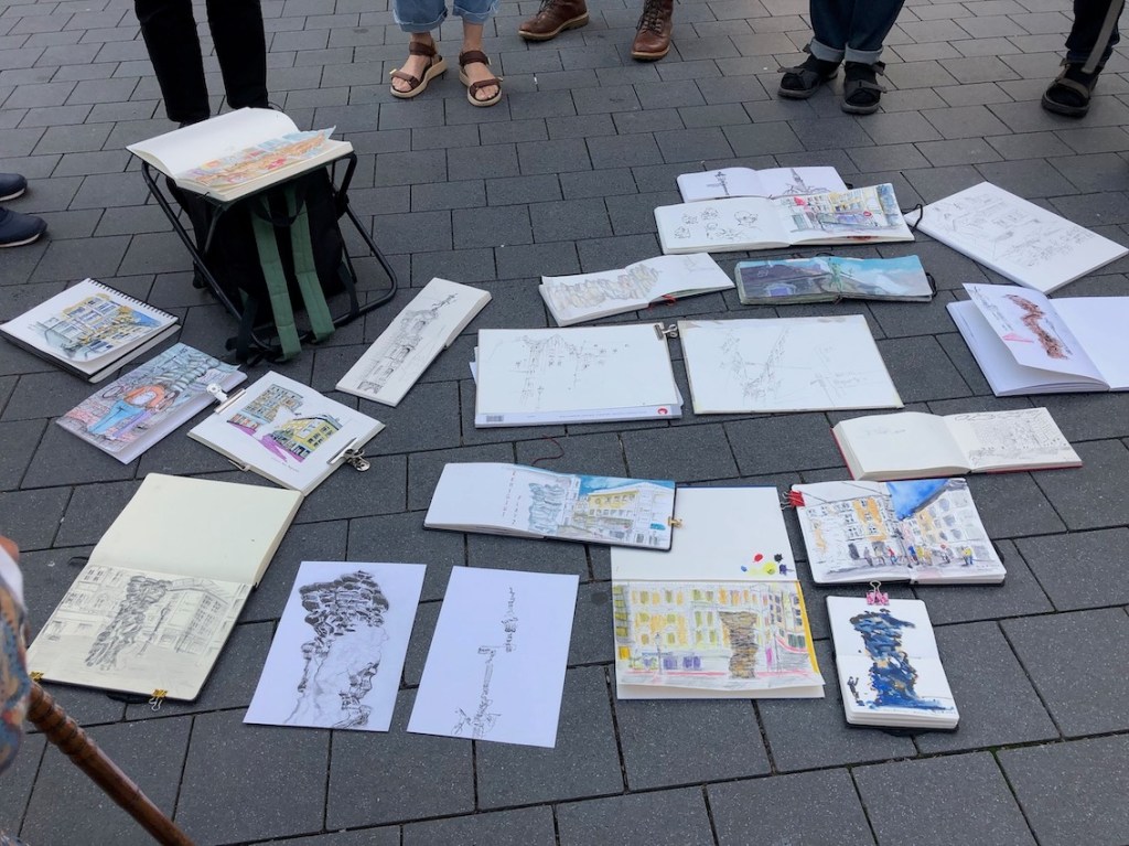 Es war ein entspannter, schöner Spätnachmittag mit vielen interessierten Zuschauern; hier unsere Skizzen: