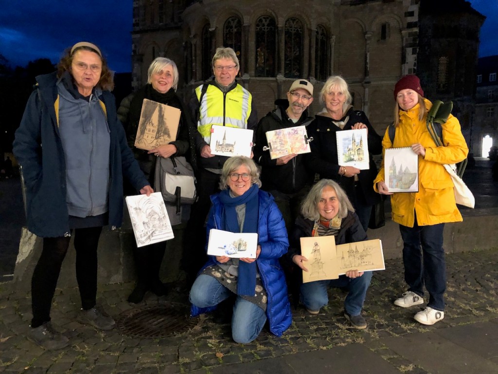 Das Bonner Münster ist entrüstet! Nein, nicht wegen dies und jenem – das Gerüst ist weg! Und es strahlt jetzt frisch restauriert und wartet darauf gezeichnet zu werden. Also nix wie hin… Am kommenden Mittwoch, dem 18.10.23, treffen wir uns ab 17:00 Uhr rund um das Münster. Speziell vom Münsterplatz oder vom Martinsplatz (Chorpartie) ist es besonders gut zu sehen. Natürlich sind auch Szenen drumherum erlaubt und erwünscht. Einkehrmöglichkeiten, falls es zu kalt wird, gibt es auch; sonst halt warm anziehen. Die Vernissage machen wir um 19:15 Uhr an der Chorseite des Münsters, Martinsplatz, wo es dann hell ist, vielleicht beim Schaufenster.