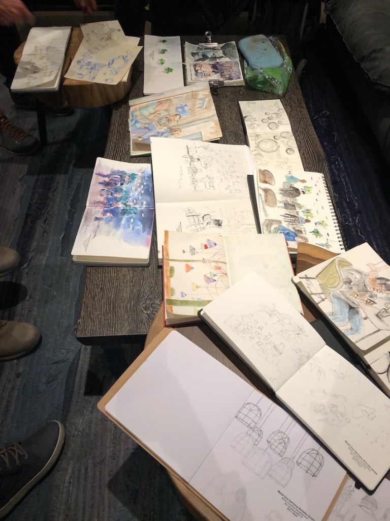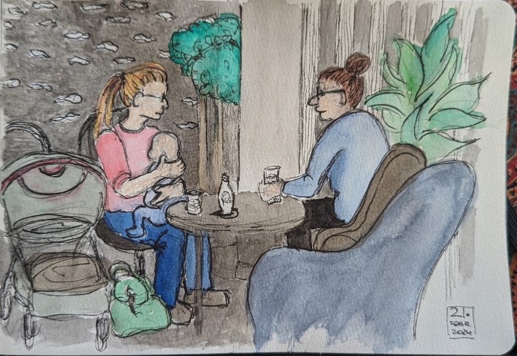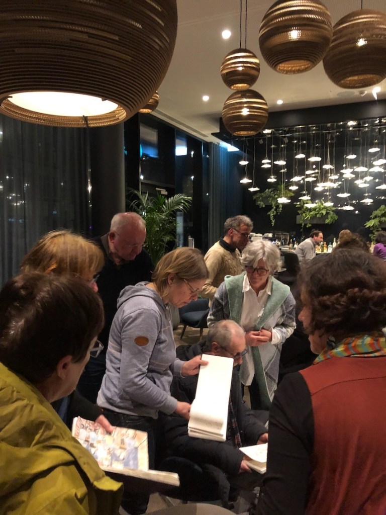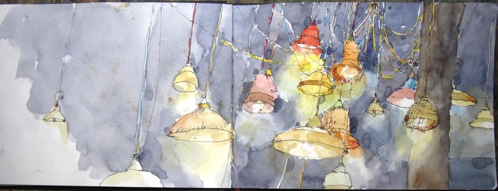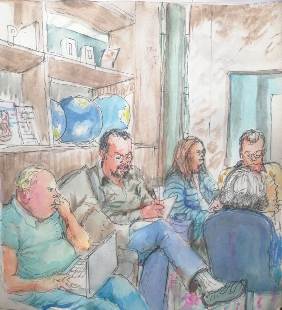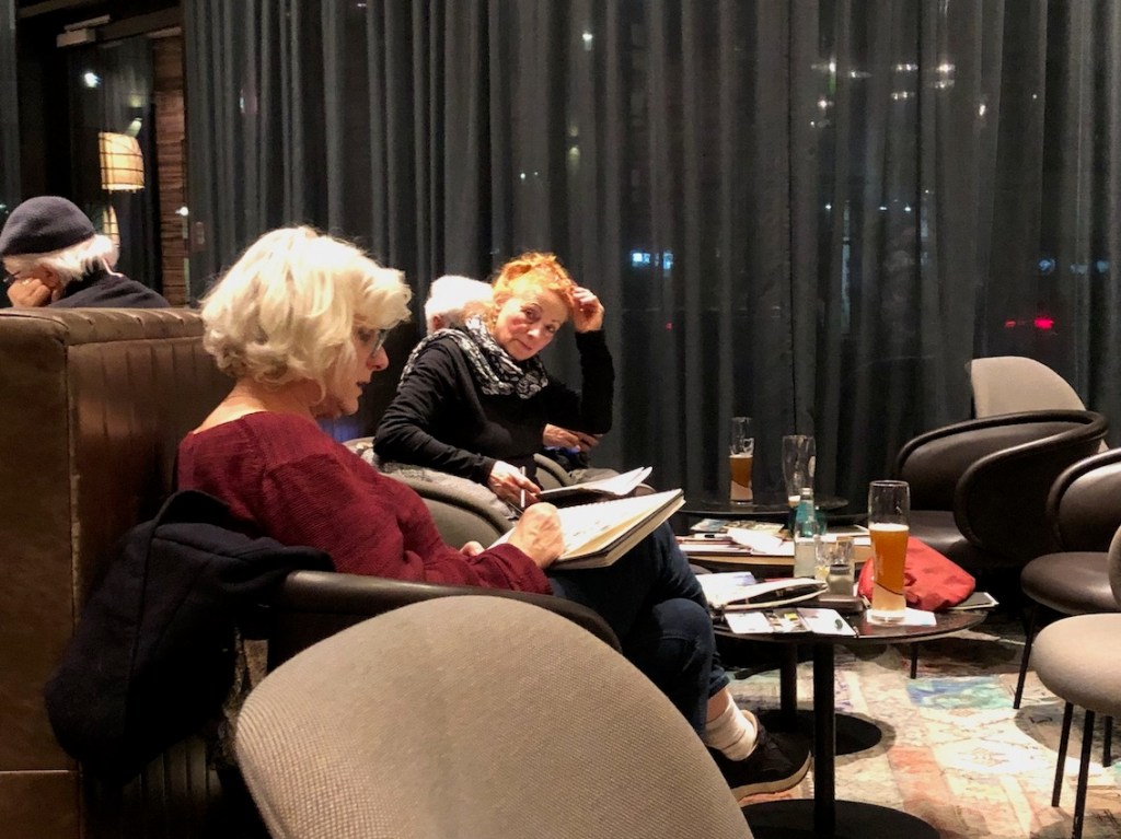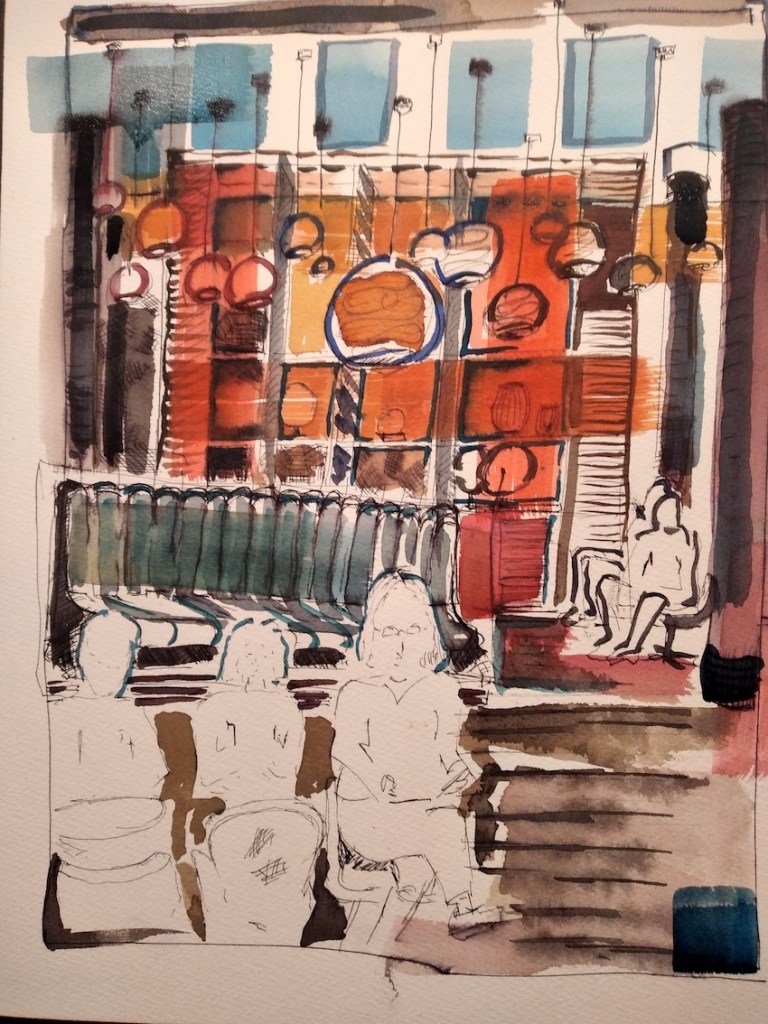 Eine kurze Nachfrage dort, ob wir Zeichener mal kommen können, stieß auf offene Ohren und eine freundliches „Selbstverständlich, gerne!“. So treffen wir uns am kommenden Mittwoch, dem 21.02.024, ab 18 Uhr – oder auch früher –  in der Lounge/ Bar vom Motel One am Hauptbahnhof Bonn, Ecke Thomas Mann Straße; der Zugang ist von der Maximilianstraße aus oder von der Straße „Am Hauptbahnhof“. Das Ambiente ist sehr ansprechend und voller Zeichenmotive: besonders die verschiedenen Lampenkreationen oder auch die Galerie der Leuchtgloben. Es gibt eine Bar, an der man sich etwas zu trinken und Kleinigkeiten zu Essen holen kann, und dann kann man gemütlich in ganz unterschiedlichen Ecken sitzen, von Plüsch bis Korb, von Ohren bis Schaukel… und zeichnen. Für die Vernissage finden wir einen Platz um ca. 19:45 Uhr.