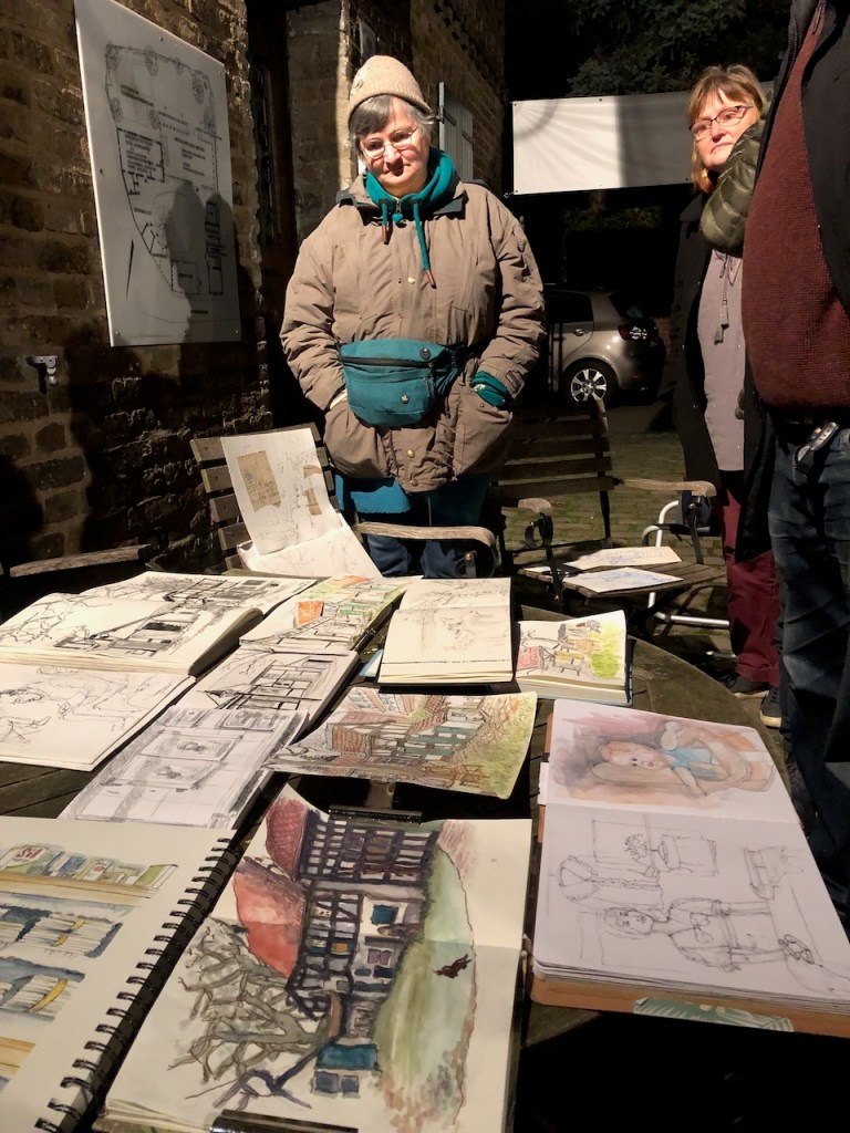 Cornelia H – Der Stall vom HeimatmuseumHolger – Innenhof bei Dämmerung Karin – das FachwerkhausWolfgang – Der InnenhofStuart – Im InnenhofFrank – Stift ist wieder geladenCornelia J – Innenhof mit FrankEle – Innenhof Jutta – den ganzen Innenhof Gitta – im Innenhof, Blick Richtung StallGitta – im StallCornelia J – Aphrodite, die Ziege, hält stillBenedikt – Eindrücke vom Malabend im MuseumCornelia J – Ilse wartet auf den FrisörterminMartina – Weiße Wäsche Holger – Werkzeuge von gestern und heuteRalf – Waschmaschine Ralf – eine kleine Auswahl an Eindrücken Heute Abend haben wir das Museum mit der Zeichengruppe MalZeit mit Ötzi geteilt Zeit für die Vernissage Vernissage bei Flutlicht Vernissage Die Gruppe