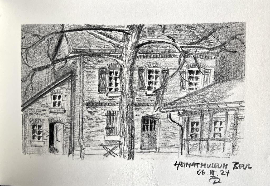 Am kommenden Mittwoch (06.03.2024) um 18 Uhr treffen wir uns am Eingang oder im Hof des Beueler Heimatmuseums (Wagnergasse 2-4, gegenüber von Hermannstraße 74, 53225 Bonn). Zur Zeit ist dort eine Ausstellung zum Thema „Wäschereien, Wäscherinnen un de Wievefastelovend – Beuel als Wäschereidorf und als Wiege der Weiberfastnacht“. Der ortsansässige „Oetzi“ wird uns aufschließen und eine weitere Zeichengruppe wird möglicherweise auch zu uns stoßen. Sowohl im Hof, als auch drinnen, im Museum selbst, kann gezeichnet werden. Es lohnt sich, einen Hocker mitzubringen.