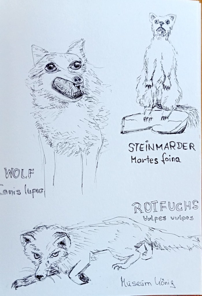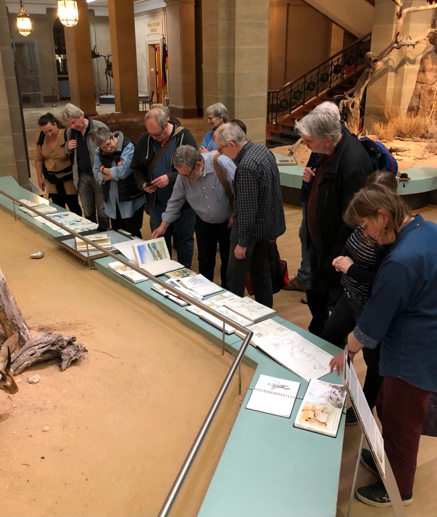 Holger – das Museum von AußenMartina – drinnen und draußenStuart – 2. Etage, Blick von den Vögel herüber zu den AffenTanja – im RegenwaldHelmut – Mitzeichner*inHelmut – SchmetterlingeHelmut – Möwen im ProfilKerstin (Karba) – PinguineKerstin (Karba) – MöwenGitta – Wattvögel I (Uferschnepfe)Gitta – Wattvögel II (Regenbachvögel)Gitta – KiebitzWolfgang – ParadiesvogelWolfgang – EisbärHolger – der EisbärKarin – DromedarKarin – CaracalBurkhard – ZikadeHeinz – Schlankaffenskelett (1935)Burkhard – 111 Jahre altHeinz – 2 Paviane beim LausenBenedikt – im WaldAngelika – Fuchs, Wolf, MaderKatja – einfach allesKatja – und noch mehrVernissage