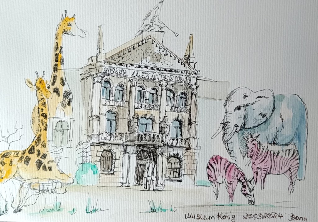Zum Abschluss der Indoorsaison (hoffentlich…) gehen wir am nächsten Mittwoch, dem 20.03.2024, ab 18 Uhr ins vielgeliebte Museum König! Jeder sucht sich seine Lieblingstiere und kann sicher sein, dass sie ihm für die Dauer der Zeichnung brav still stehen. Die Vernissage machen wir um 19:45 Uhr in der „Savanne“ im Erdgeschoss.