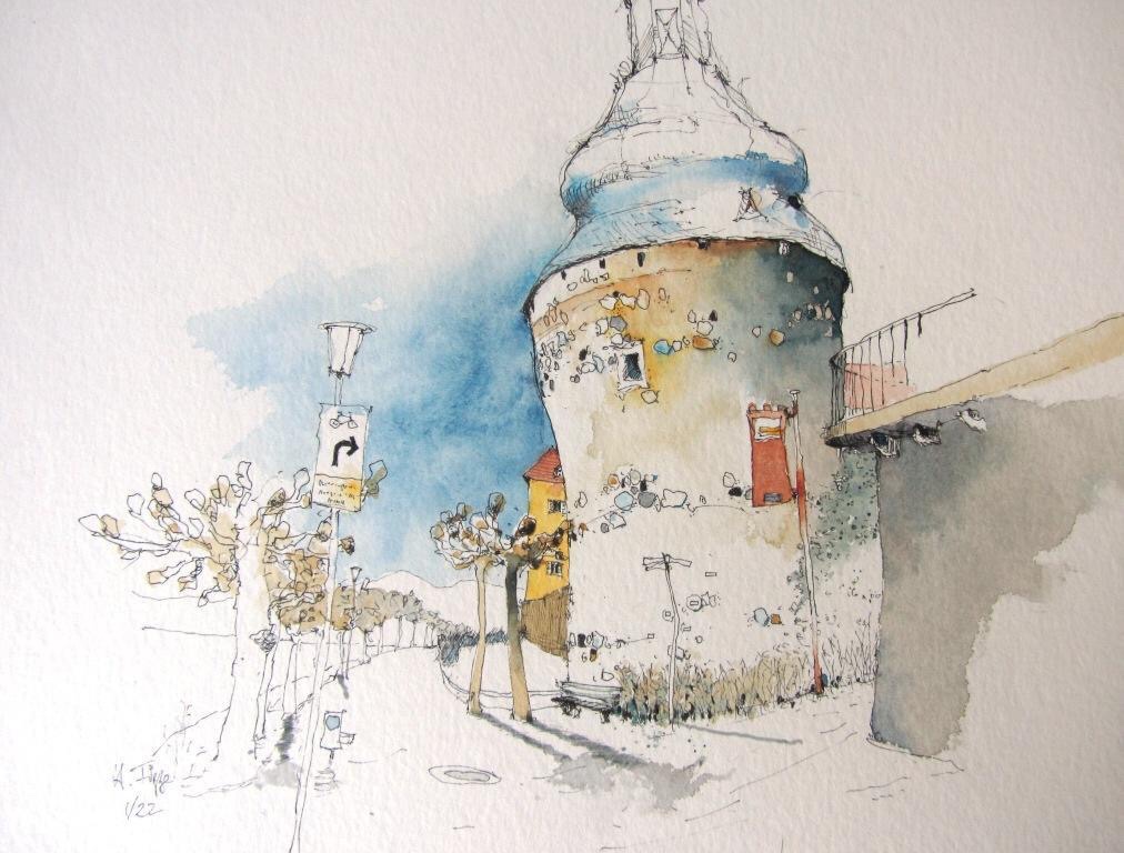 Am Mittwoch kamen Urban Sketcher aus Köln, Rheinbach und noch viel weiter her. Natürlich waren wir Bonner*innen auch zahlreich vertreten. Es begann am Ende etwas zu regnen, also flüchteten einige in das Café Die Blüte und verpassten dann die Vernissage und das Gruppenfoto. Trotzdem hatten wir viel Spaß und haben tolle Bilder gemalt. Hier einige der Ergebnisse: