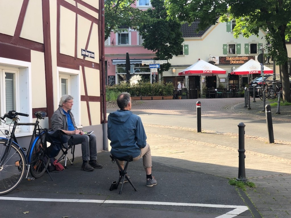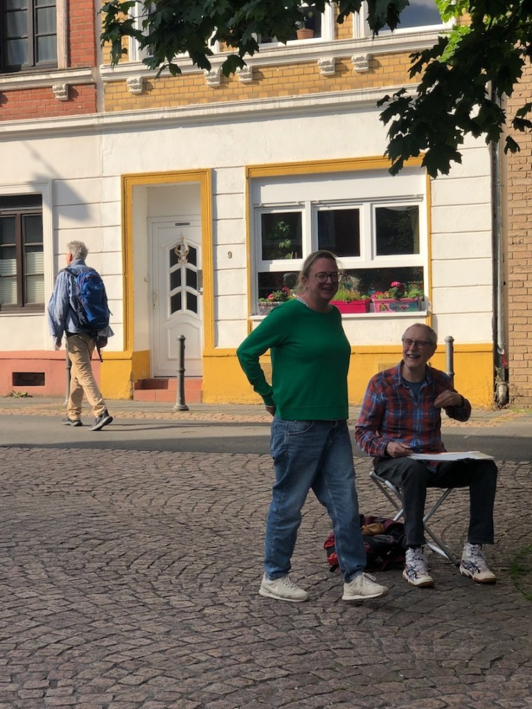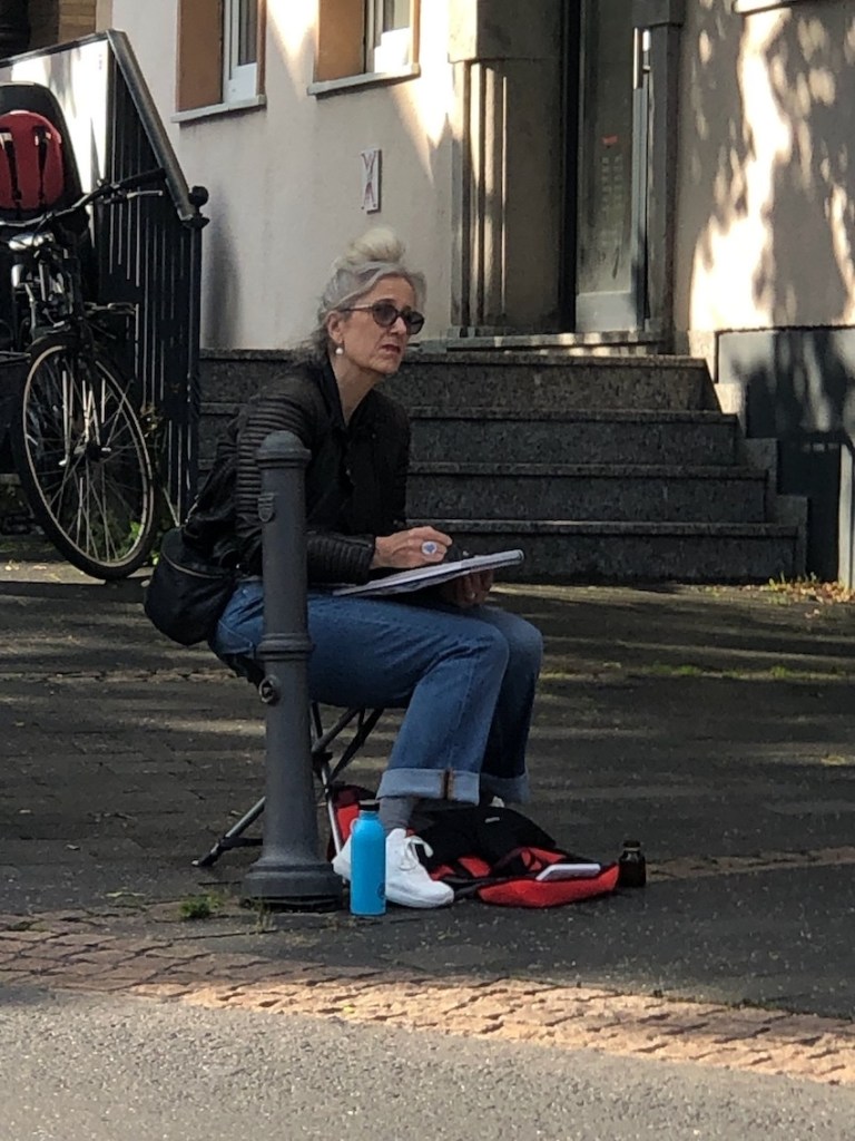 Es kamen viele Zeichner*innen, bei traumhaftem Wetter haben wir uns in Endenich breit gemacht. Einige Passanten waren sehr interessiert.