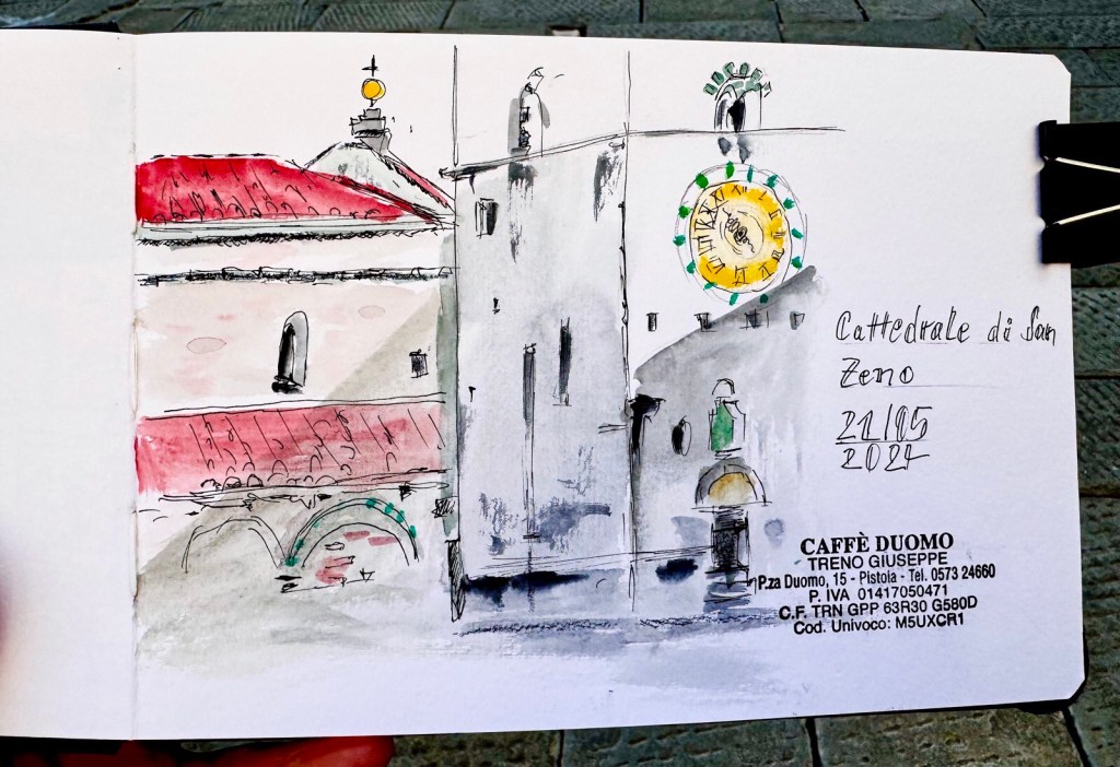 Jenny – beim Cappuccino in Pistoia, mit Blick auf die Kathedrale