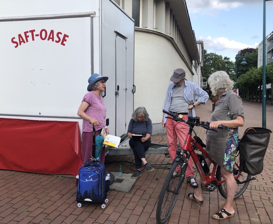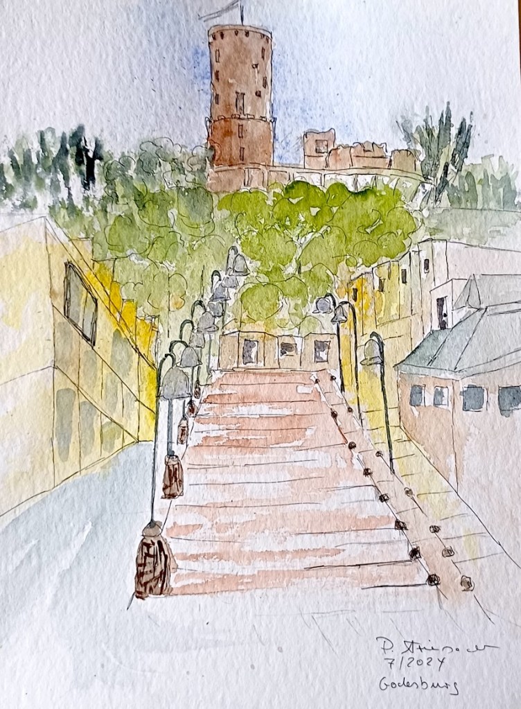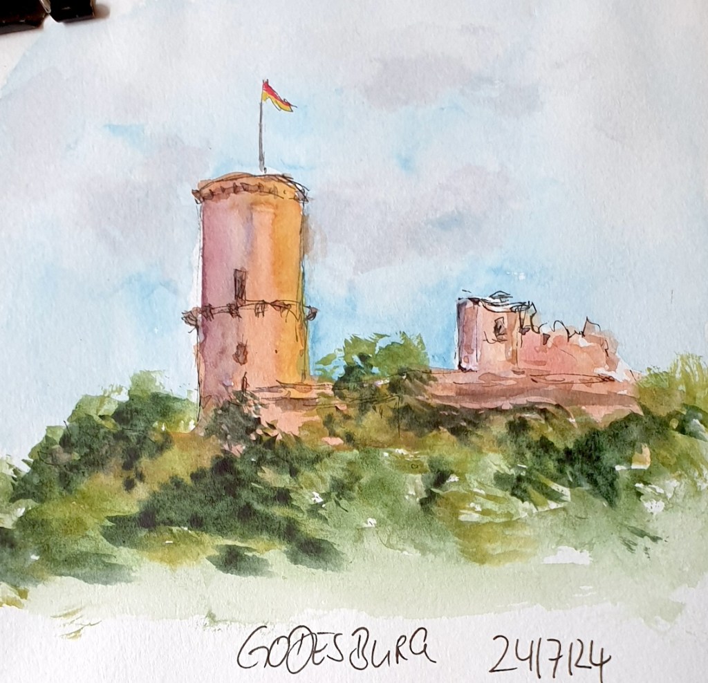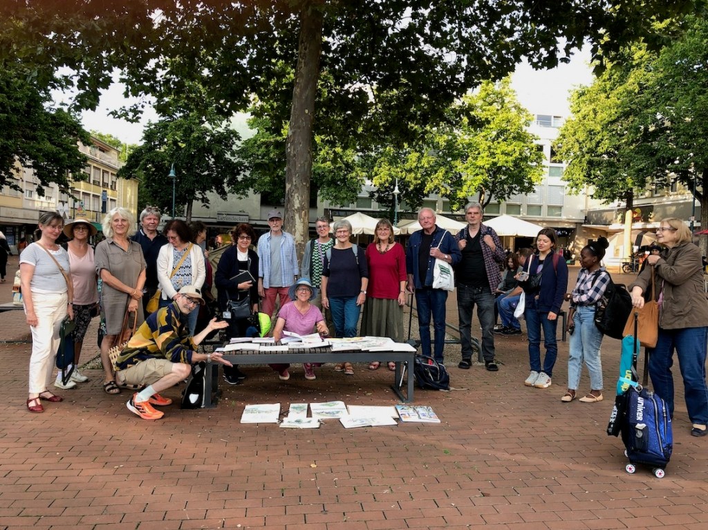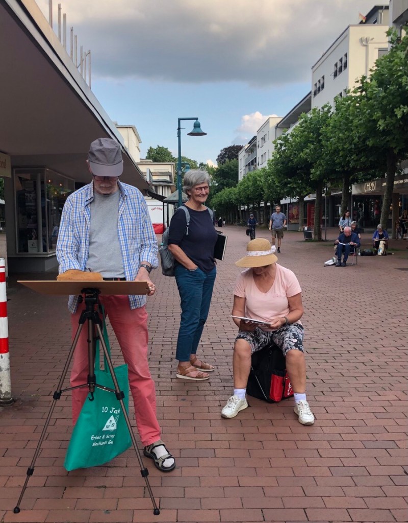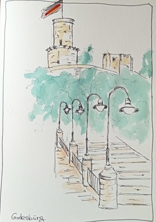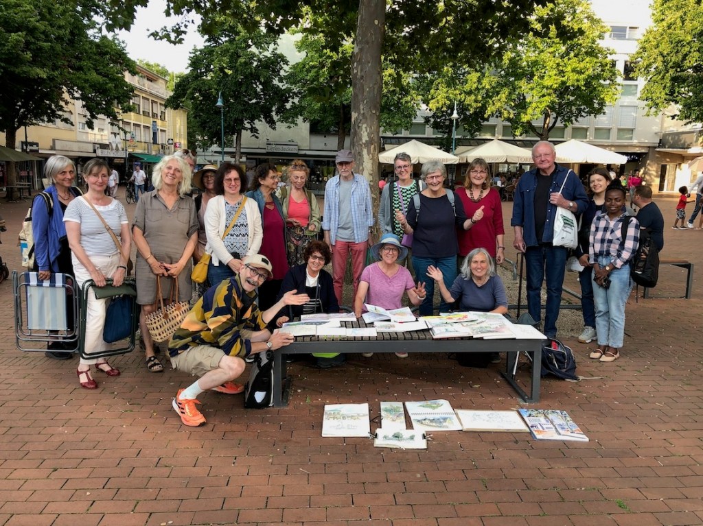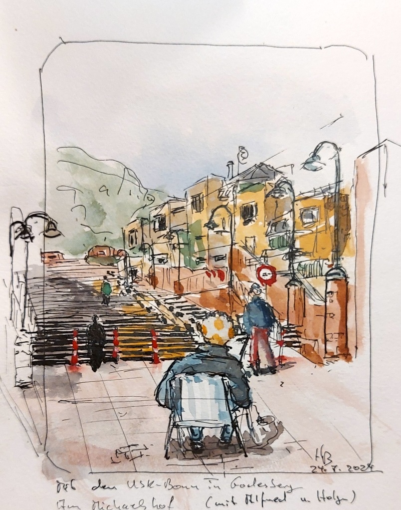 Das Wetter hat super mitgespielt, es kamen zahlreiche Mitzeichner*innen, etwa 25 an der Zahl. Die Godesburg war ein begehrtes Motiv, der Theaterplatz mit Umgebung wurde auch eingefangen.