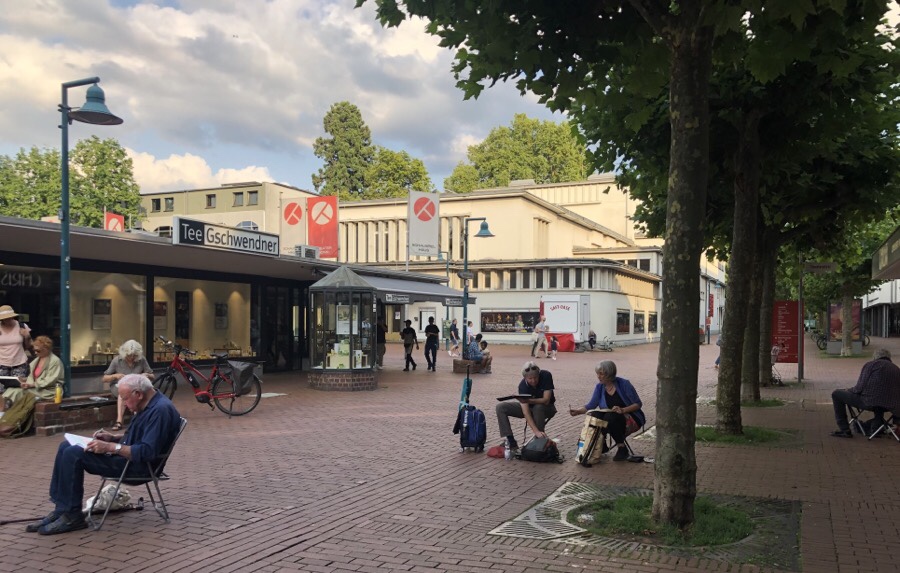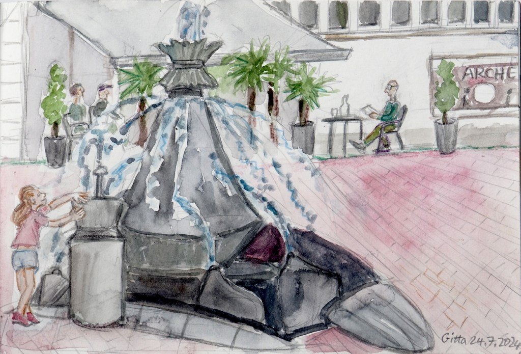 Diesmal treffen wir uns am Mittwoch, dem 24.07.2024, ab 18:00 Uhr in der Stadtmitte von Bonn Bad Godesberg, am Theaterplatz. Motive werden wir genug finden: den Platz mit seiner Geschäftigkeit, Skulpturen, ein Brunnen, Cafés, das Theater, die Burg, die über dem Ambiente trohnt, die Auslagen beim Teeladen oder andere….halt eine lebendige Innenstadt. Zur Vernissage kommen wir zusammen gegen 19:35 Uhr am Brunnen auf dem Theaterplatz.