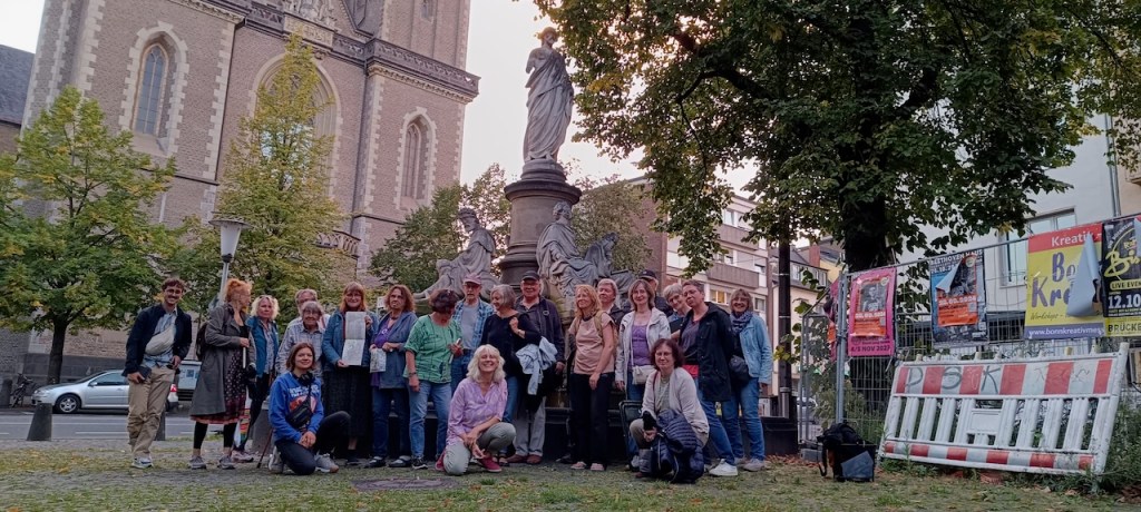 Am Mittwoch, dem 18.09.2024, treffen wir uns am Stiftsplatz ab 18:00 Uhr zum Zeichnen. Der Stiftsplatz nördlich der Innenstadt zwischen Kölnstraße und Welschnonnenstraße ist etwas unwirtlich, da er meistenteils aus Parkplatz besteht. Aber die imposante Stiftskirche, ein schöner Springbrunnen und die vielen exotischen Läden in der Nähe bieten genug Zeichenmotive und falls es regnet gibt es Einkehrmöglichkeiten. Die Vernissage machen wir um 19:30 Uhr am Brunnen. Der Stiftsplatz ist bestens mit dem ÖPNV erreichbar: eine Bushaltestelle ist direkt auf dem Platz, ansonsten sind es 5 Minuten Laufweg vom Bertha von Suttner Platz.