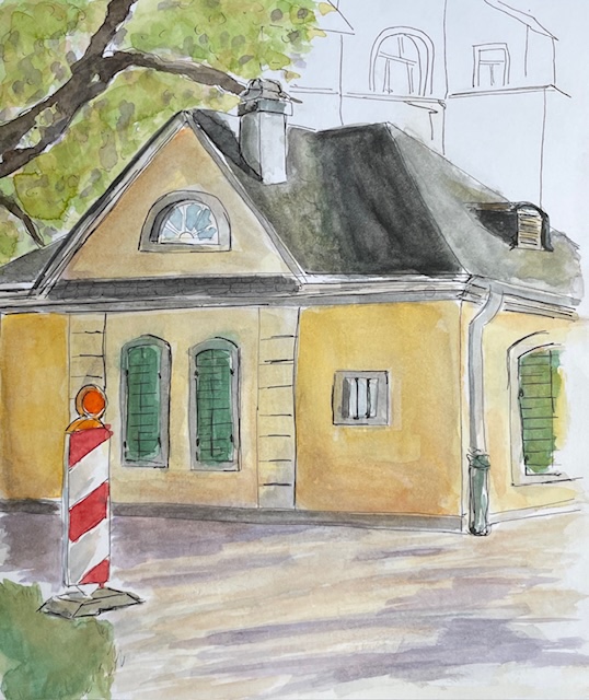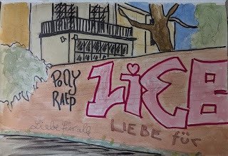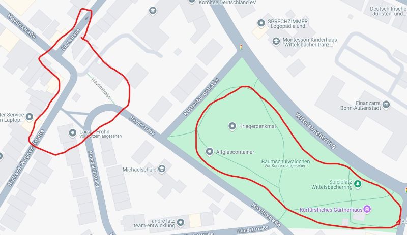 An der Ecke Lisztstraße, Richard-Wagner-Straße und Haydnstraße gibt es ein paar imposante Häuserfassaden für die Hausbesessenen unter uns. Wer lieber ins Grüne geht oder spielende Kinder, joggende Sportnarren oder schlendernde Hundebesitzer*innen und ein kurfürstliches Gartenhaus und vielleicht sogar einen Kriegerdenkmal lieber zeichnen würde, der/die ist im Baumschulwäldchen gut aufgehoben.