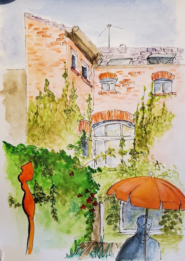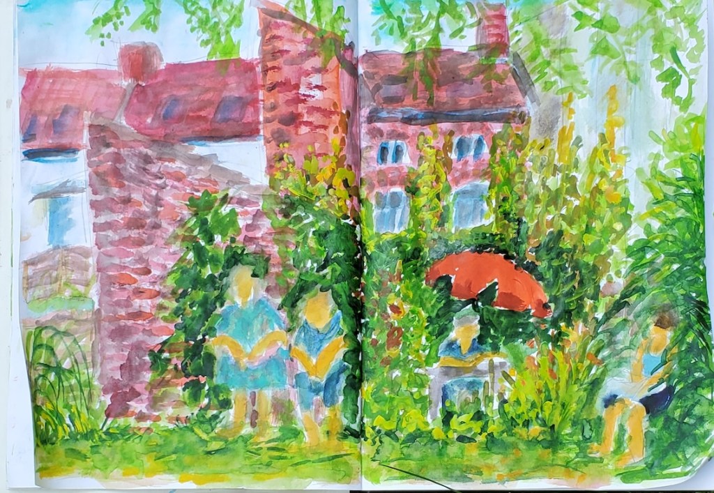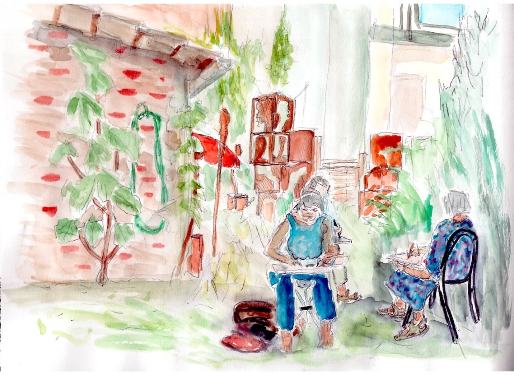 Es war ein sehr heißer Tag… aber wir hatten jeder ein schattiges Plätzchen zum Zeichnen und haben es alle sehr genossen:
