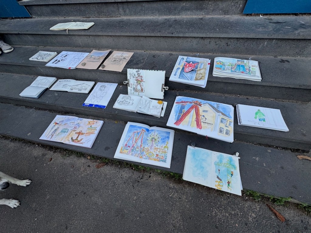 Das letzte Treffen vor dem Deutschlandtreffen der Urban Sketcher in Stuttgart, am kommenden Wochenende. Wo sich etwa 1.000 Urban Sketcher aus Deutschland und den angrenzenden Ländern treffen werden. Wenn ihr noch Fragen deswegen habt, kommt gerne an diesem Mittwoch (10.09.) vorbei. Eure Admins fahren nach Stuttgart am Donnerstag.