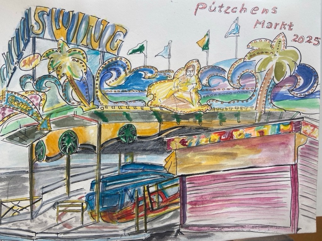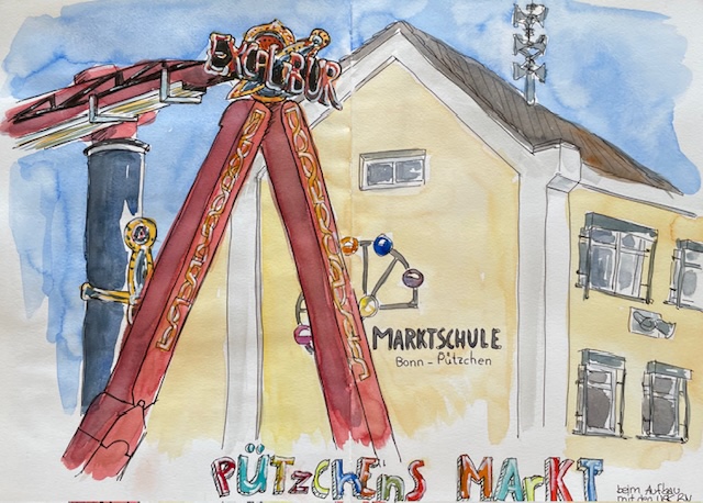 Es folgen die Zeichnungen vom Pützchen Markt, Fotos und Grüße von unterwegs.